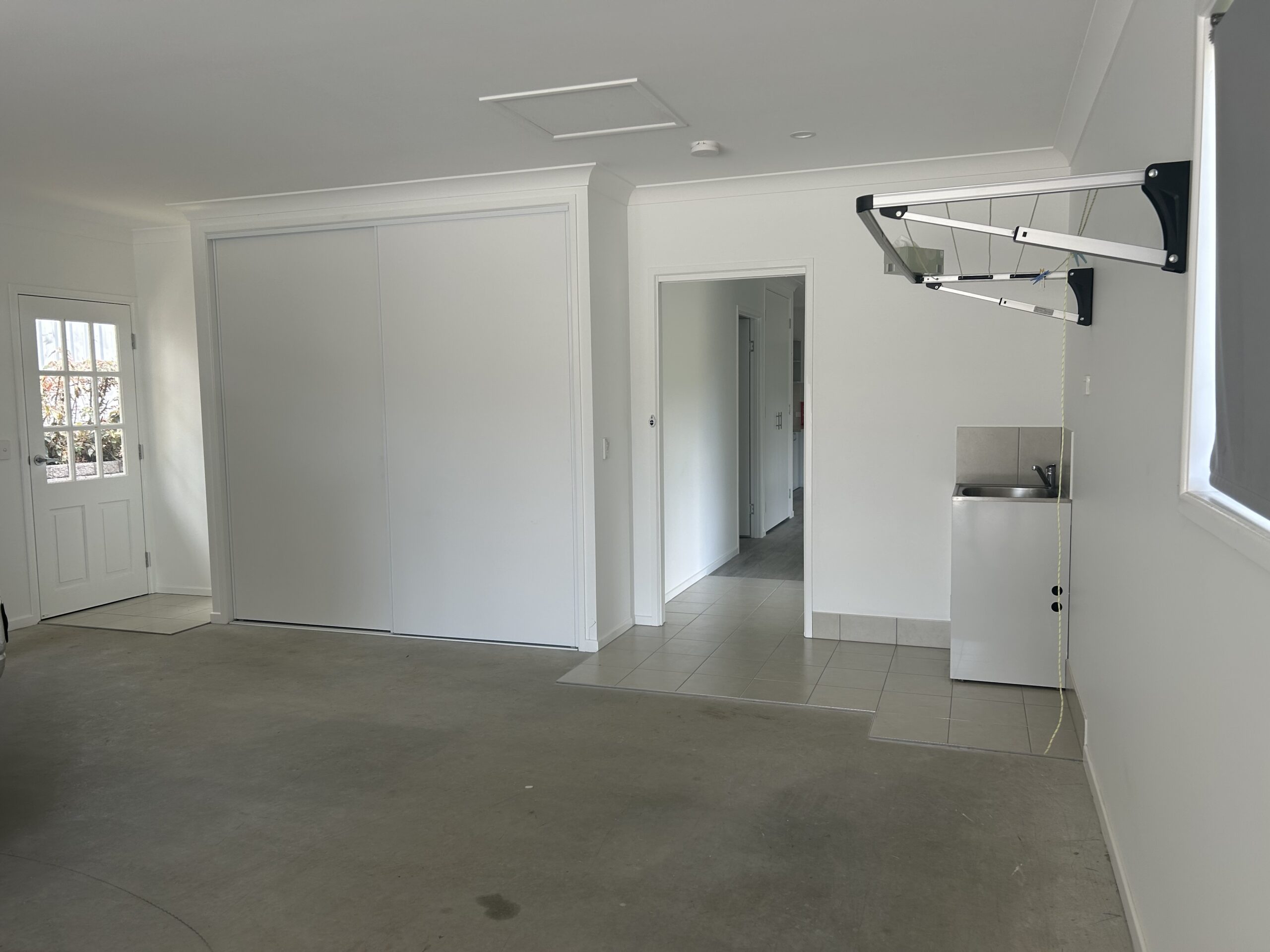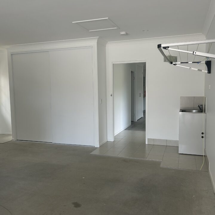 * A Double lock up garage with extra width allowing for additional storage. You will also find the laundry and clothesline in here.