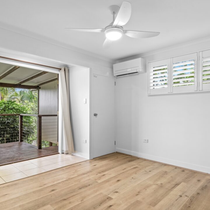 * Main bedroom with air conditioning and access to the back deck