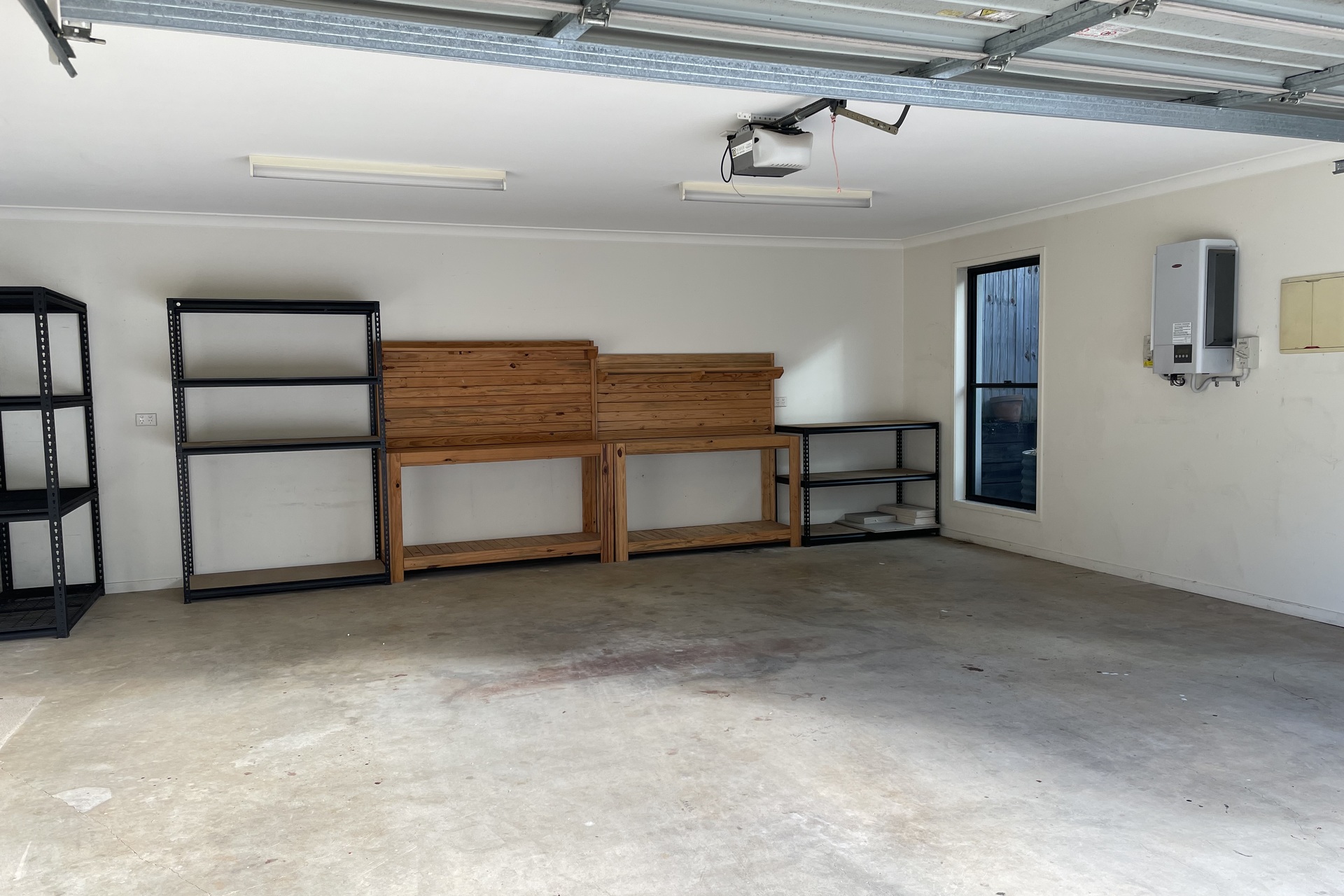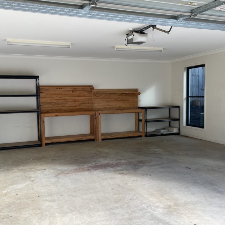 * Large double garage with storage shelves and direct entry to the house