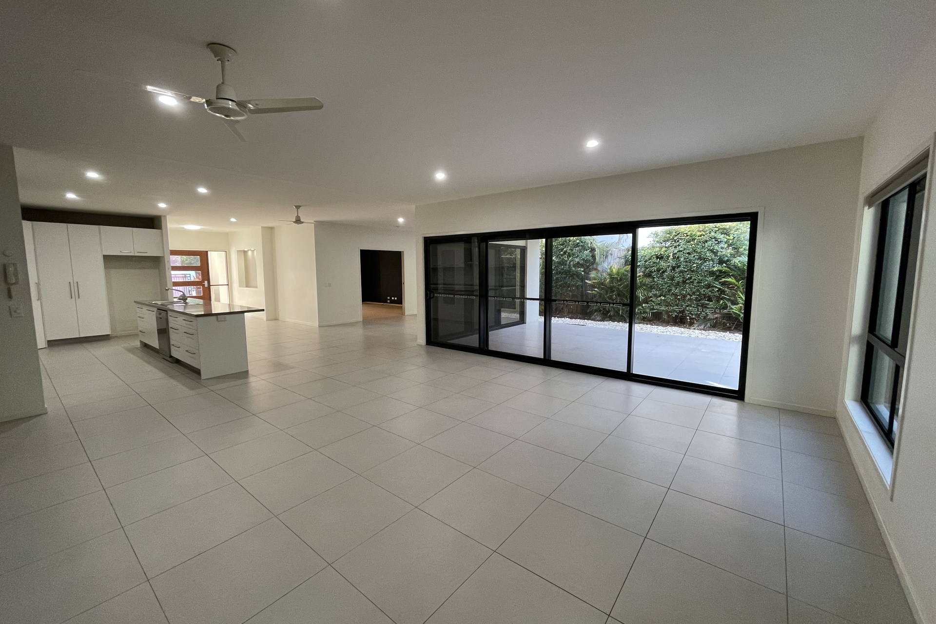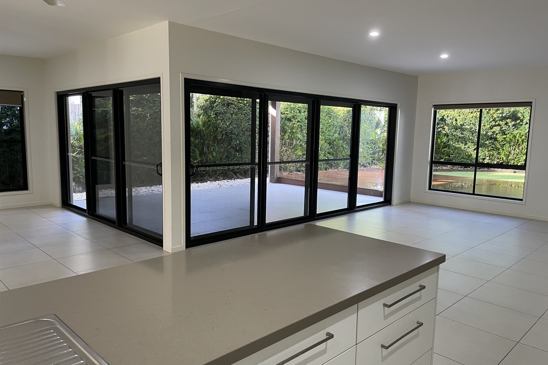 * Large family room / dining area with glass sliders to entertainment area with huge deck