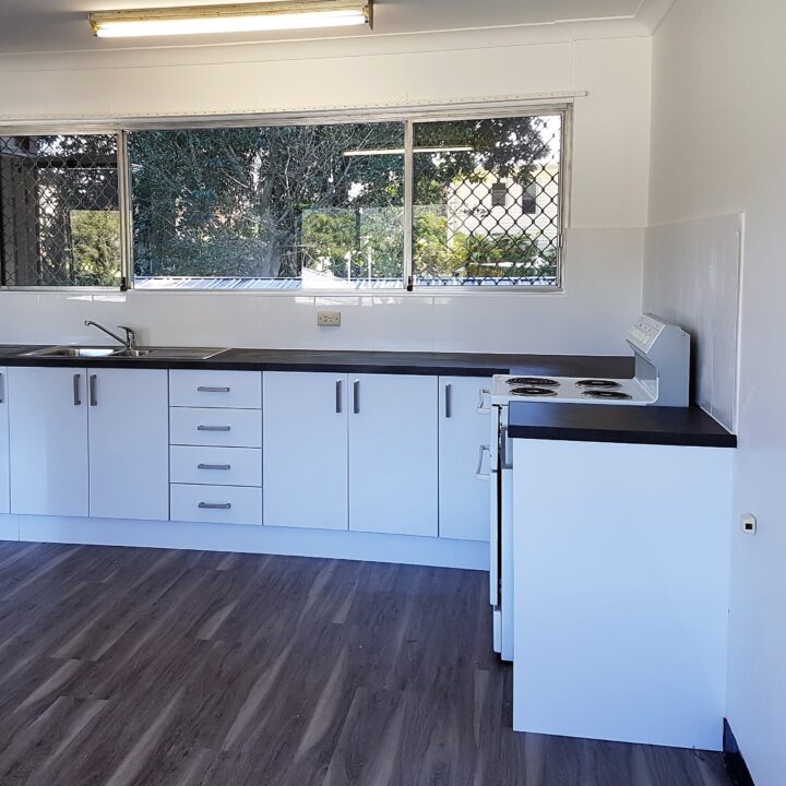 Inside, you’ll find a spacious open-plan living area complemented by a modern kitchen, complete with a full-sized stove and ample cupboard space — perfect for everyday cooking and storage.