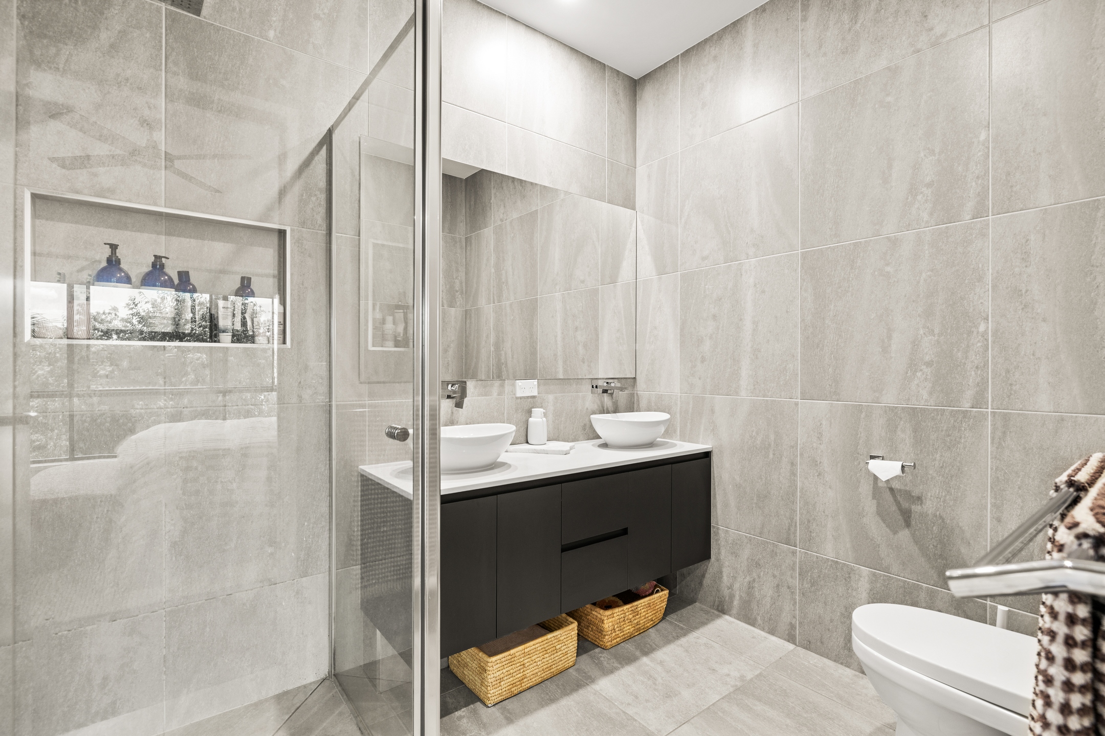 The central chef’s kitchen is both sophisticated and practical, featuring stone benchtops, soft-close cabinetry, stainless steel appliances, 90cm oven with gas cooktop, and a butler’s pantry. The air-conditioned main bedroom is privately positioned complete with an elegant ensuite, walk-in-robe and lovely outlook, while also on this level you’ll find the study/fourth bedroom, laundry and guest WC.