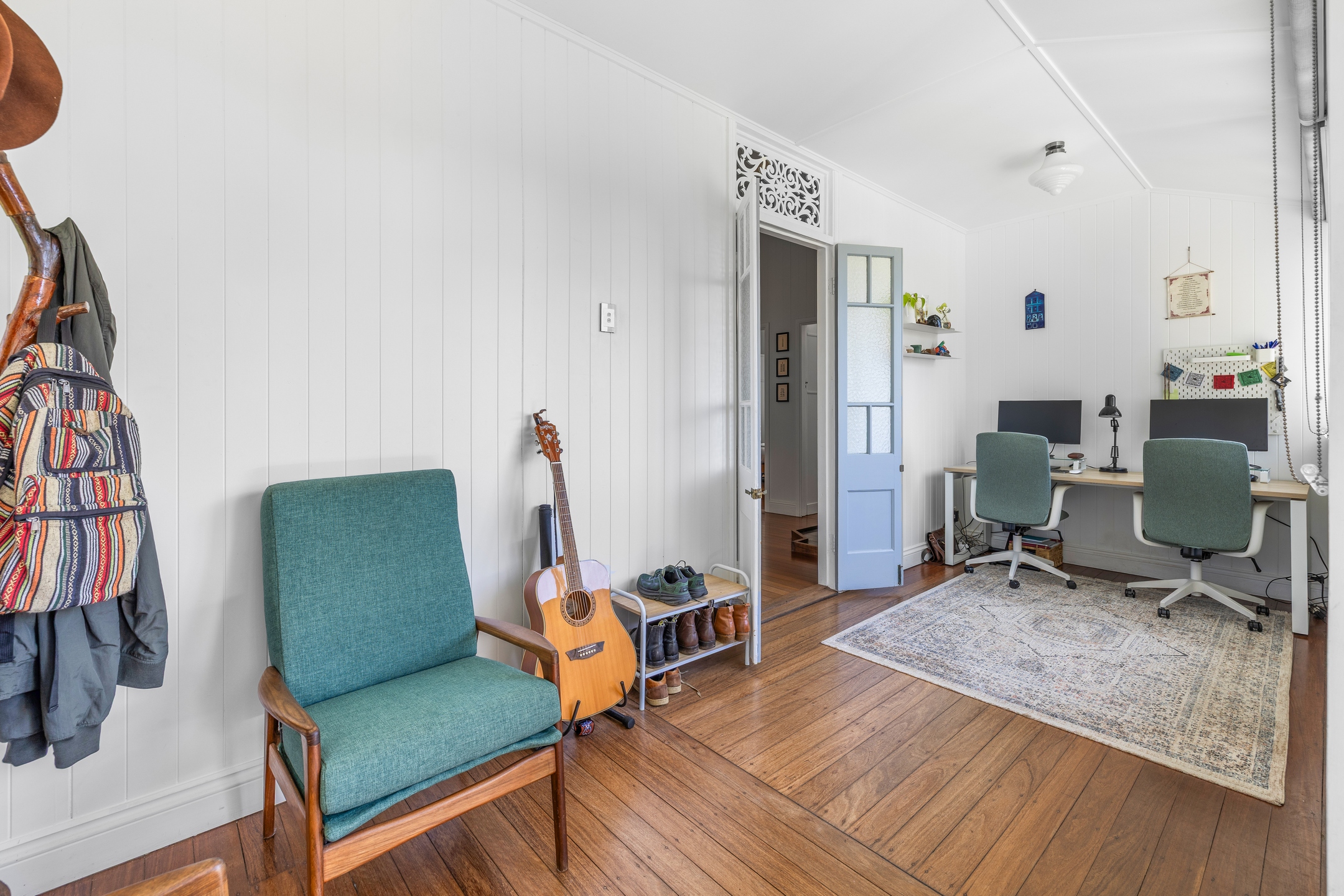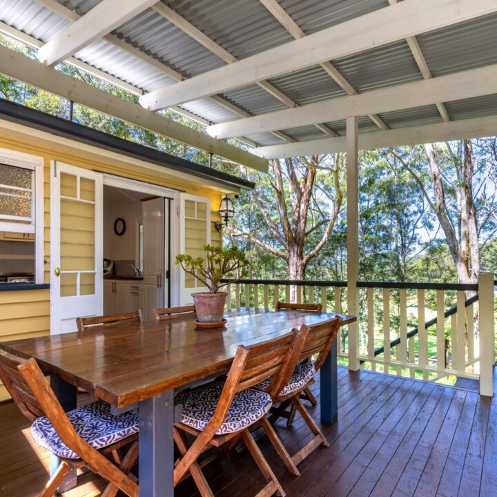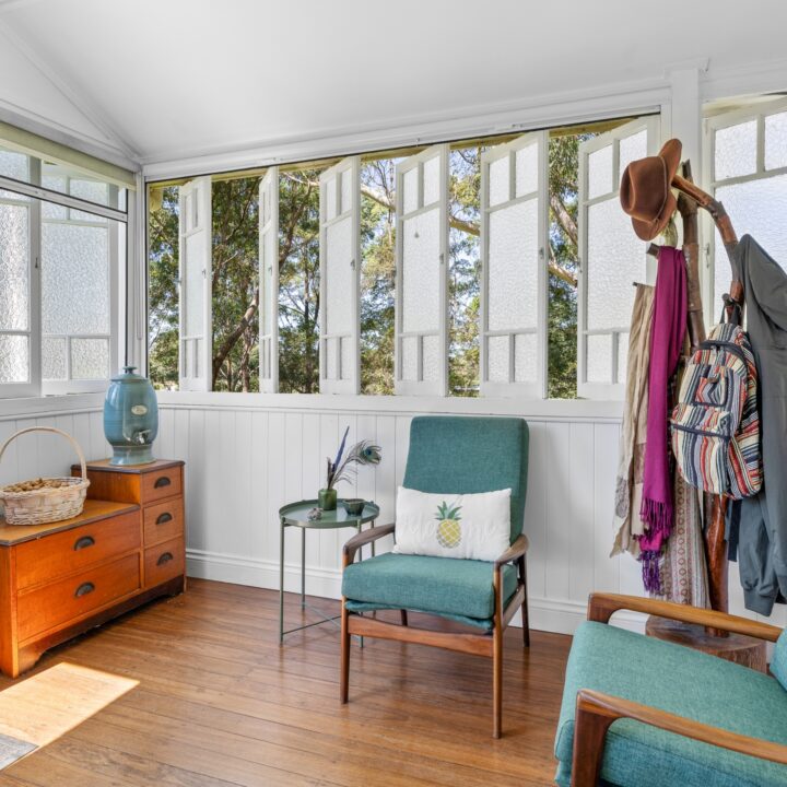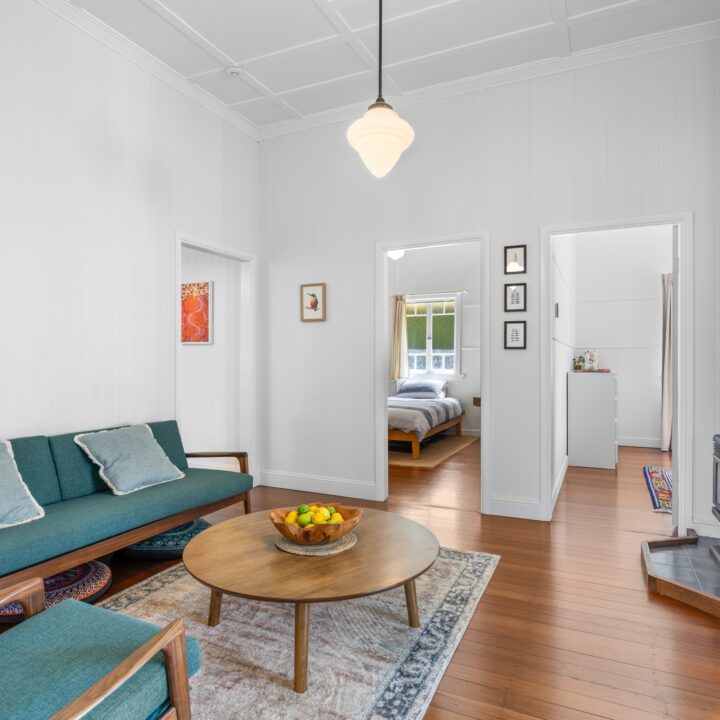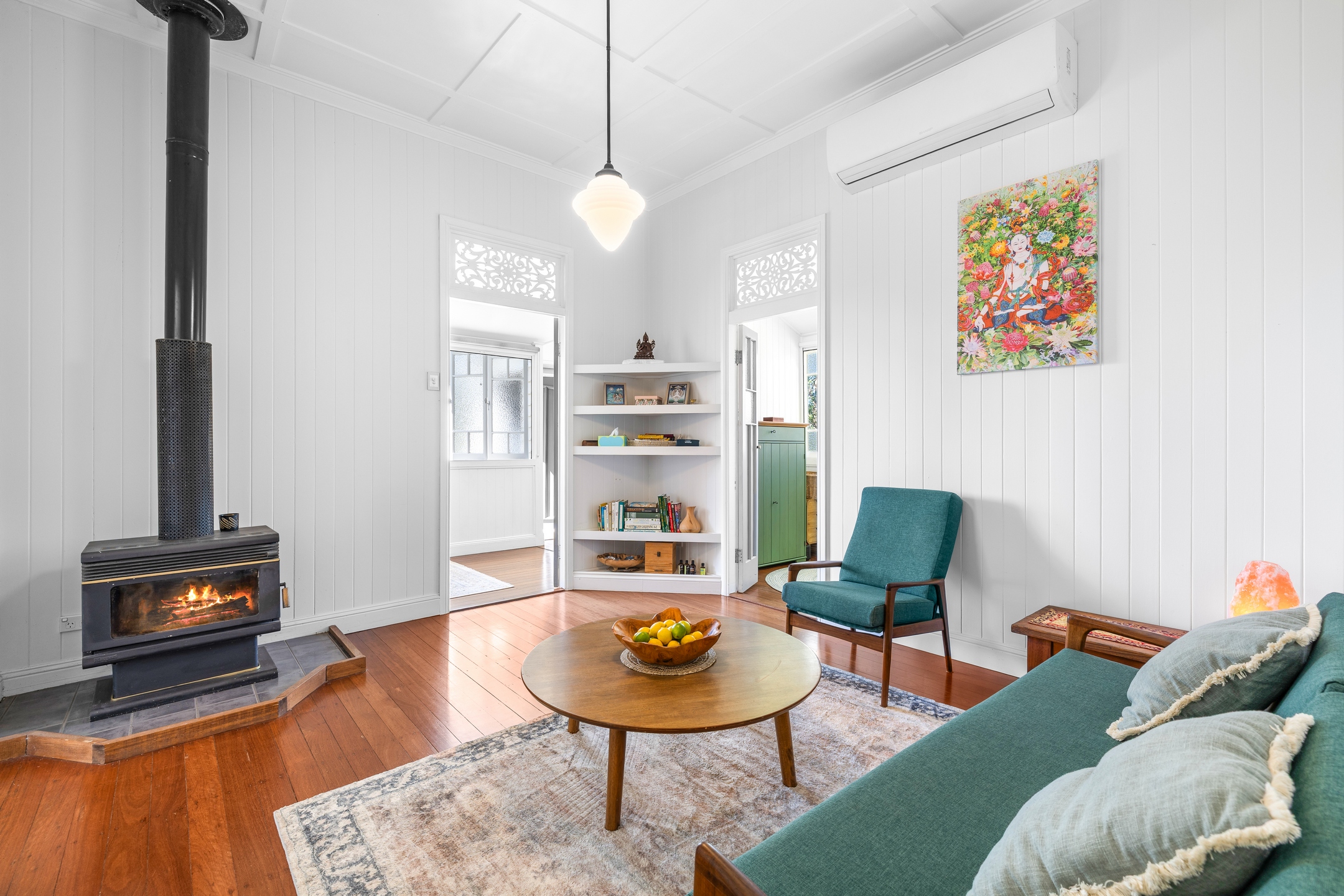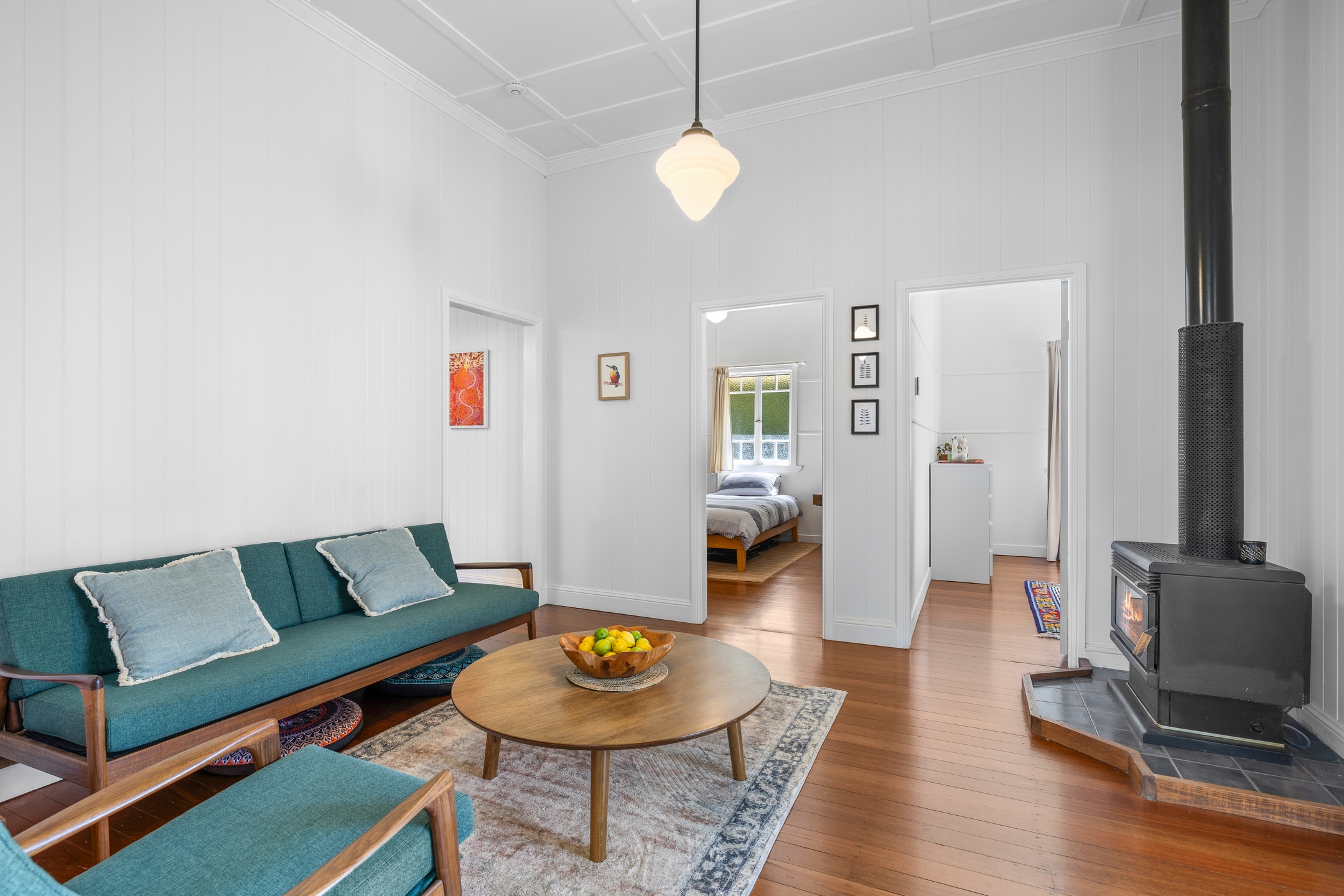 Originally relocated from Brisbane, the home has been thoughtfully restored, showcasing timeless features including polished hardwood floors, fretwork breezeways, casement windows and a cosy combustion fireplace.