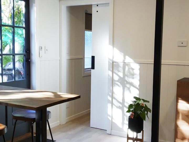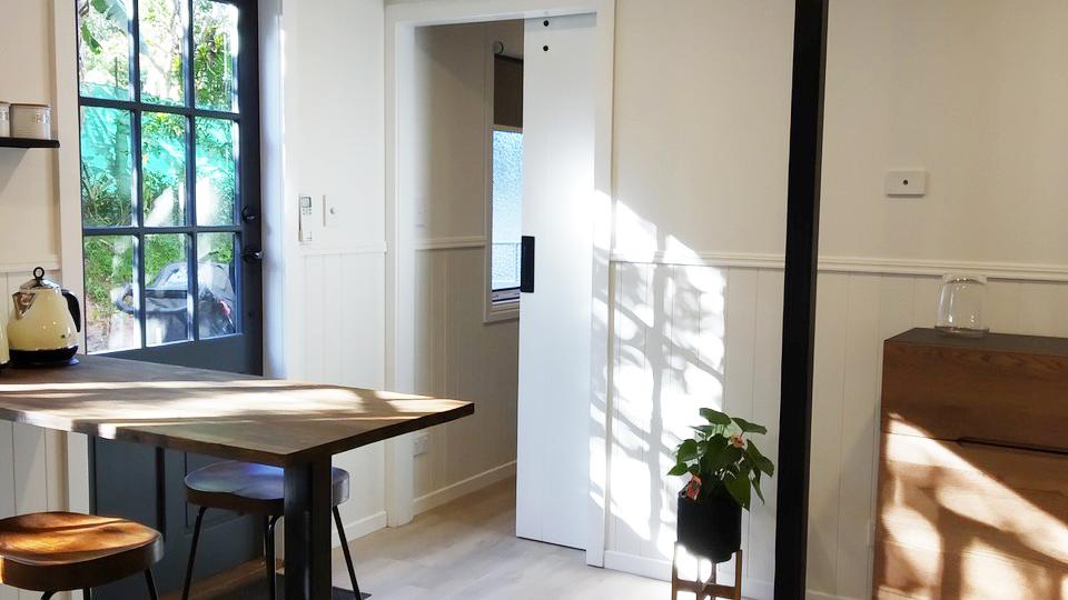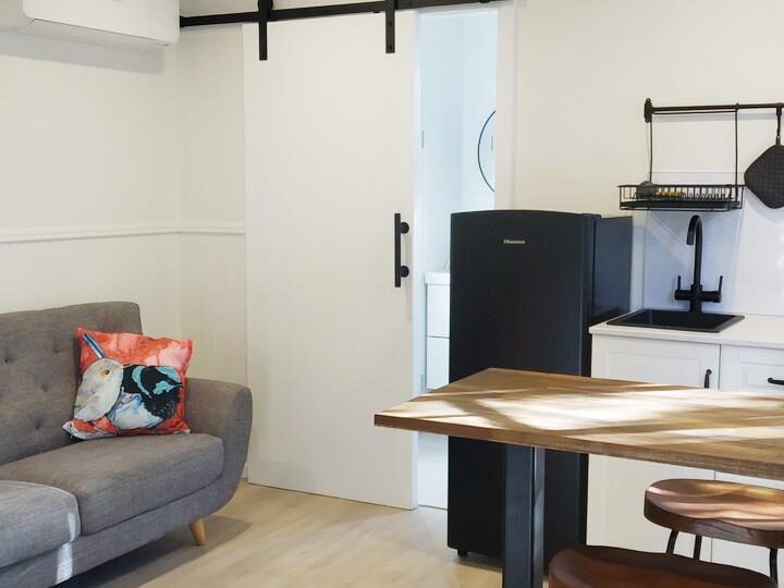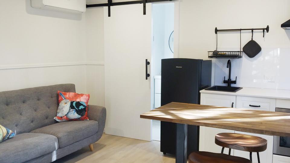 Under the home, the former workshop has been transformed into a calm and versatile space – perfect for a home office, studio, business or additional storage.