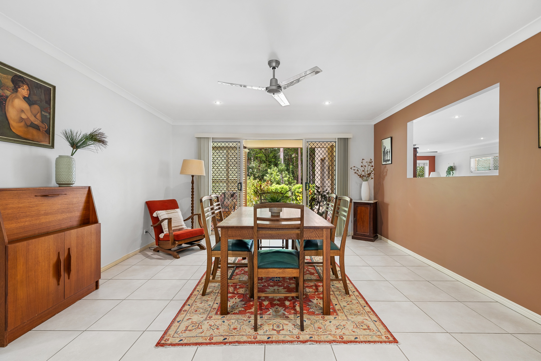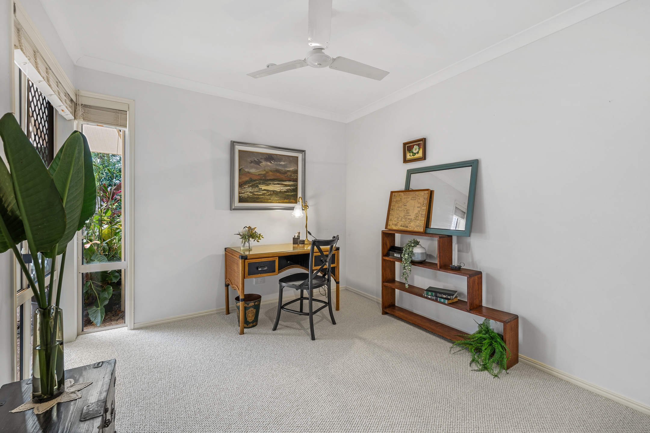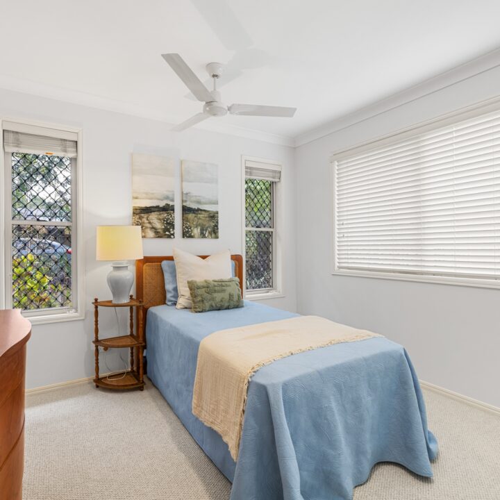 The four bedrooms are well-positioned throughout the home to provide flexibility for families, guests or a home office setup. The main bedroom enjoys garden views and includes a walk-in robe and ensuite, creating a peaceful retreat. The remaining bedrooms are well-sized and serviced by a central bathroom, ensuring everyday practicality and comfort.