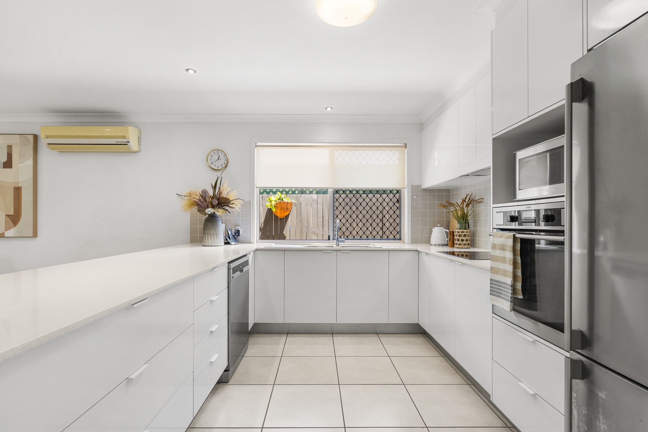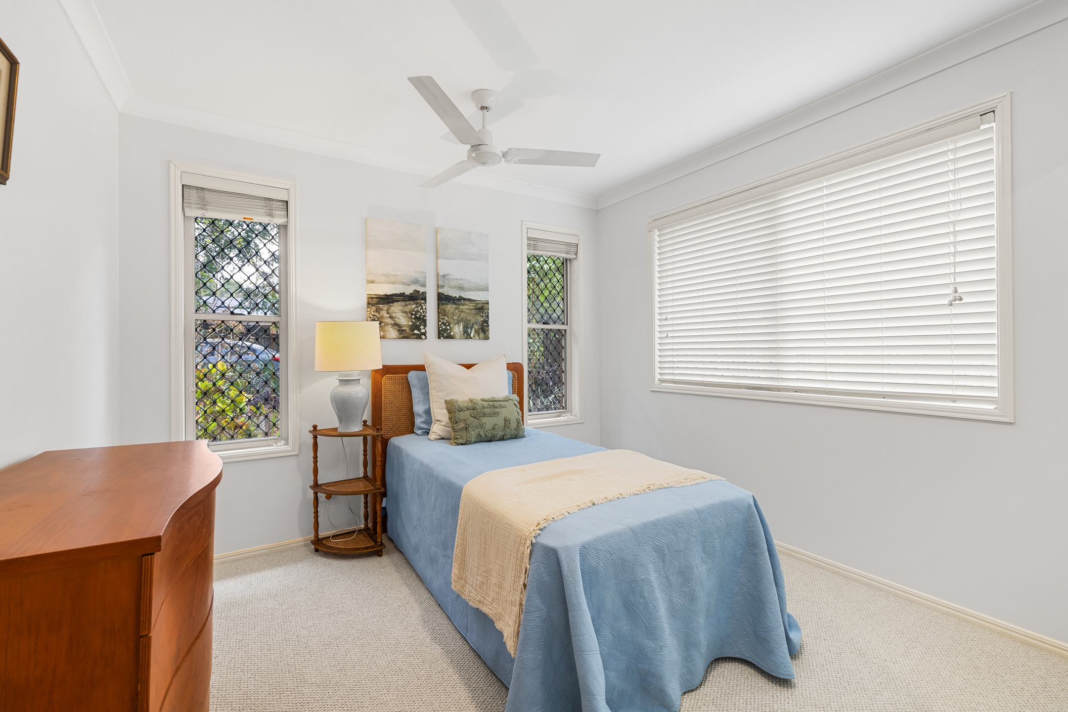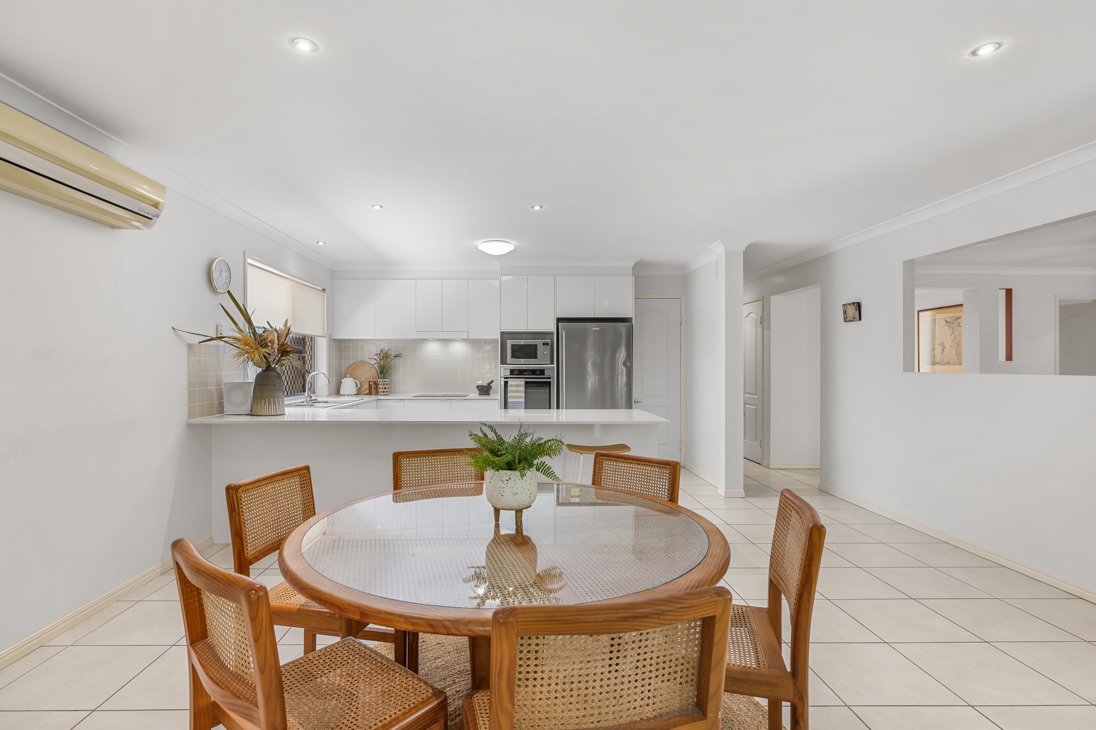 The four bedrooms are well-positioned throughout the home to provide flexibility for families, guests or a home office setup. The main bedroom enjoys garden views and includes a walk-in robe and ensuite, creating a peaceful retreat. The remaining bedrooms are well-sized and serviced by a central bathroom, ensuring everyday practicality and comfort.