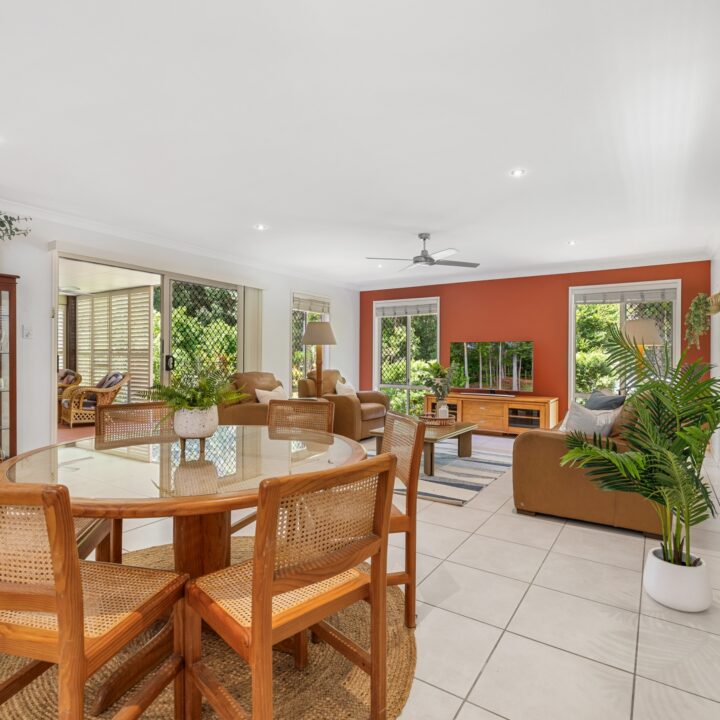 Nestled within the peaceful, tree-lined streets of the sought-after Old Orchard Estate, this home offers a rare blend of privacy, space and serene garden living. Set on a generous 720m2 block and surrounded by established greenery, it backs onto a leafy reserve, creating your own private sanctuary. Wake to birdsong, enjoy dappled morning light across the lawn, and unwind in the afternoon with gentle breezes, this setting truly delivers that Palmwoods slow-living magic.