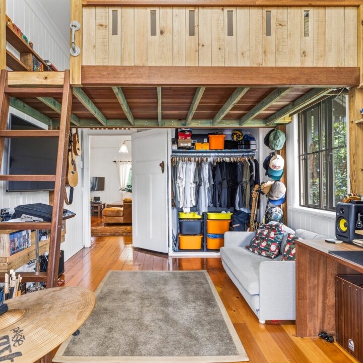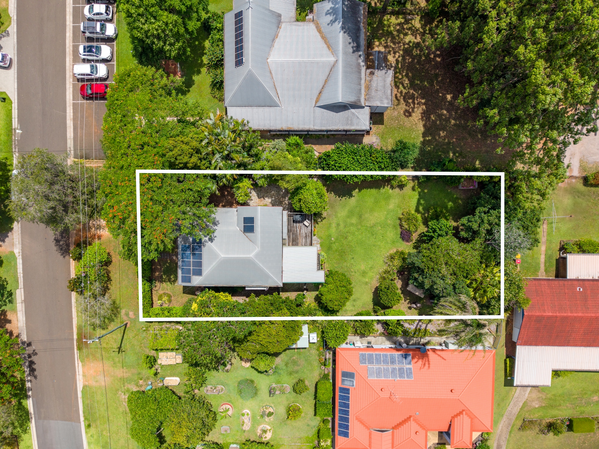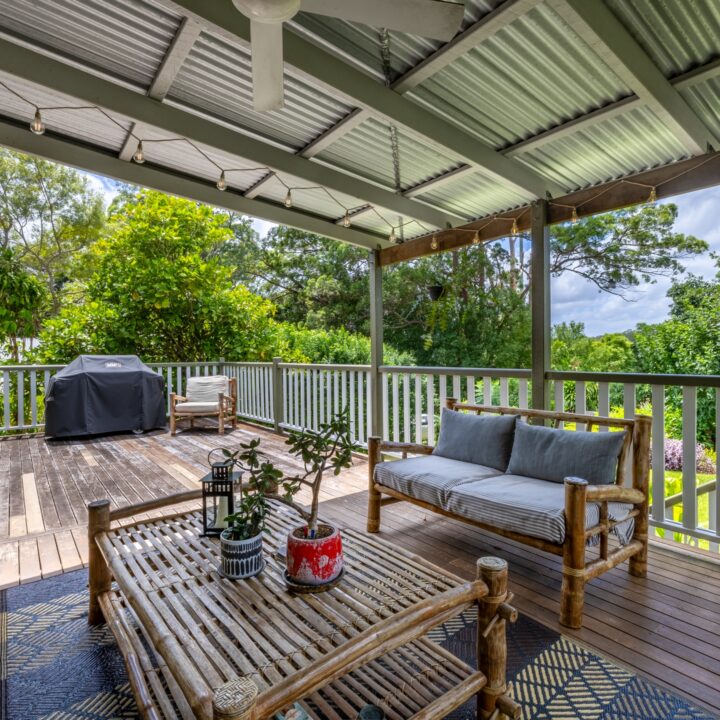 Outside is where this property truly shines. The large deck with under-cover area is the perfect space to laze away your days, from early morning cuppa’s with the birds to afternoon drinks with friends. With so much flat, useable land for the kids to play, or the whole family to enjoy a game of backyard cricket, you will definitely feel a sense of yester-year in this home. With the Anglican Church as neighbours on one side, and the Community Garden on the other, this space brings a feeling of peace & quiet so rare in today’s world; yet just a short stroll to all the amazing shops, cafe’s and restaurants Palmwoods has to offer.