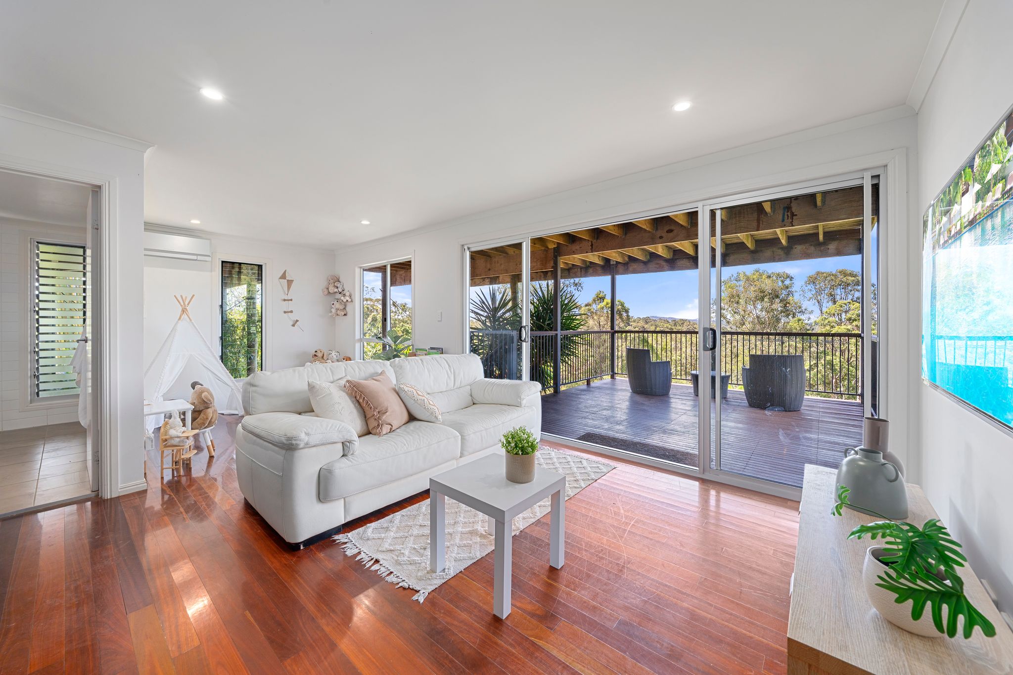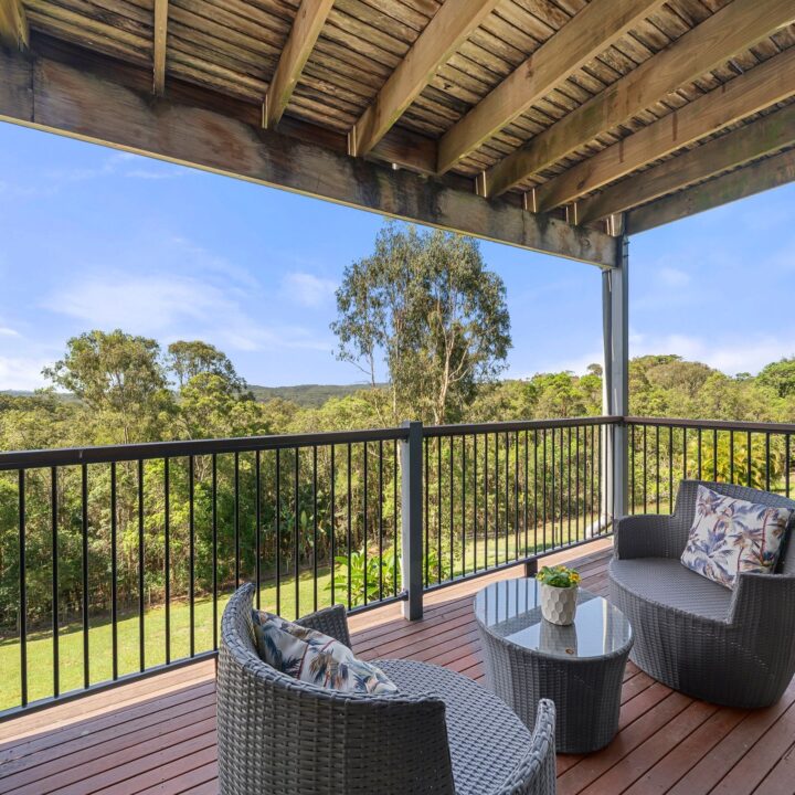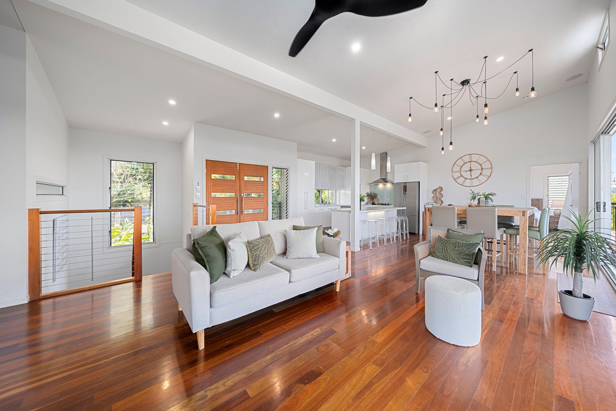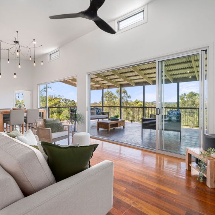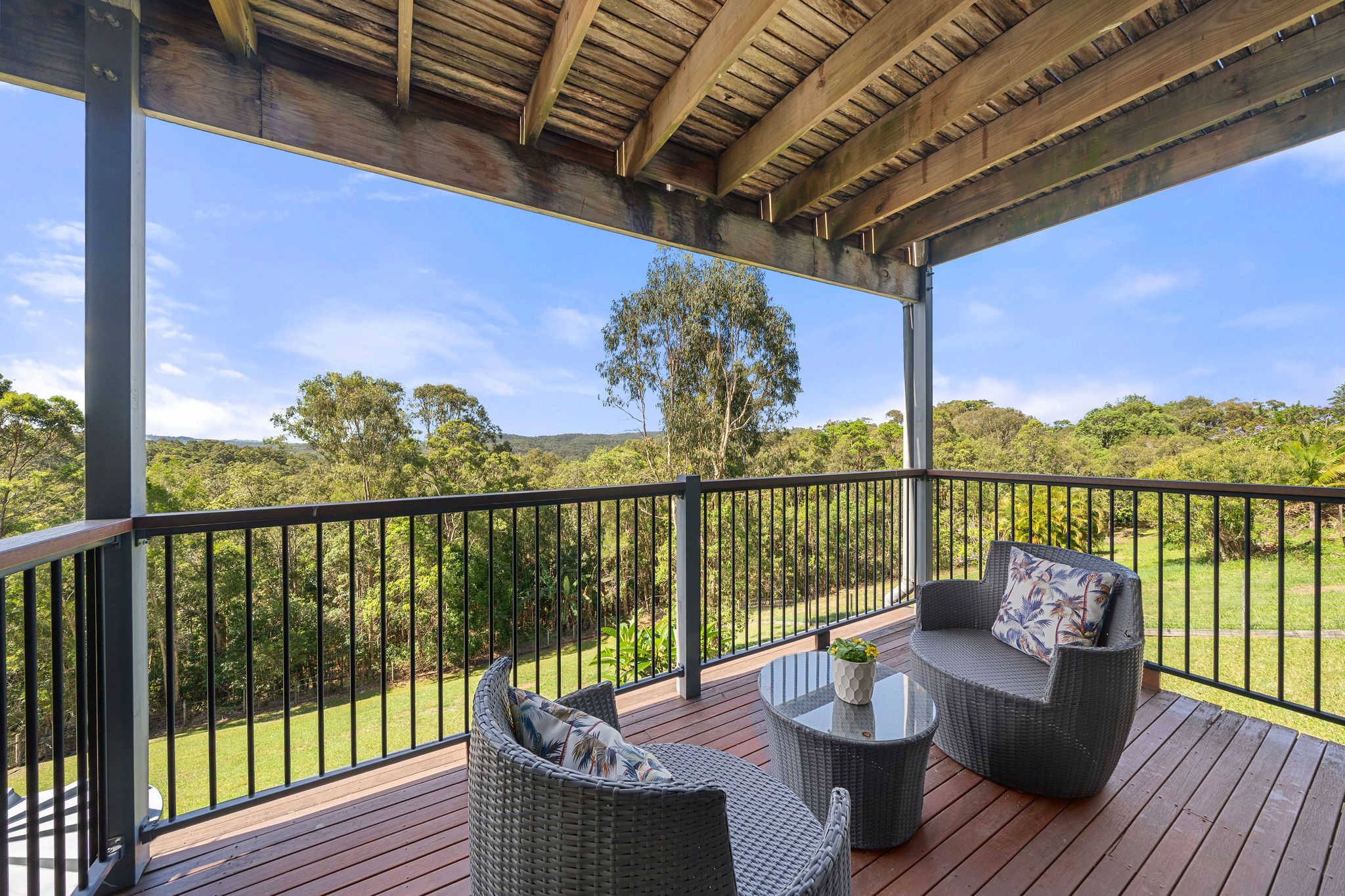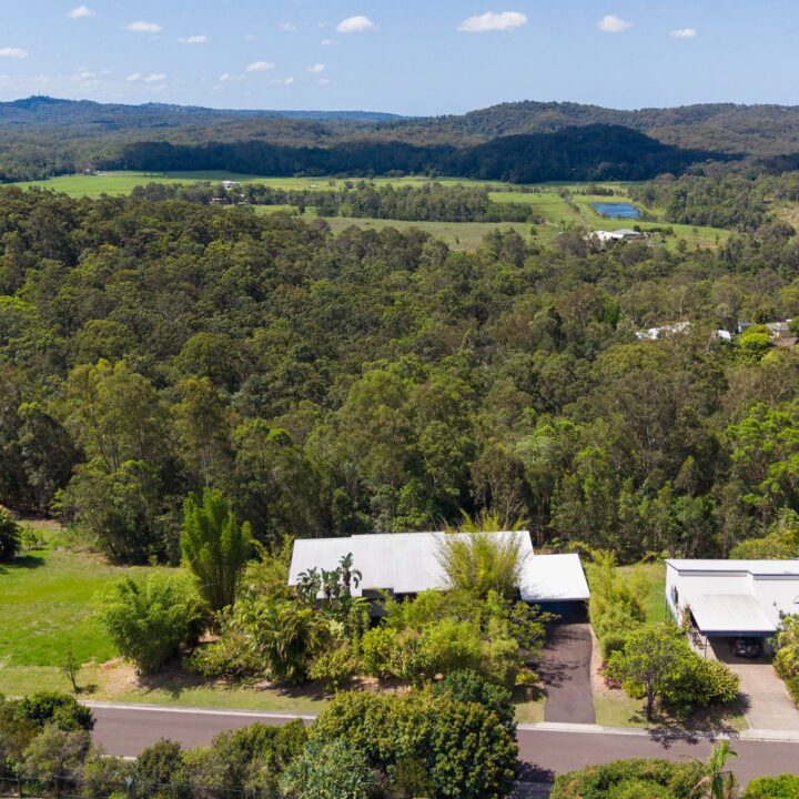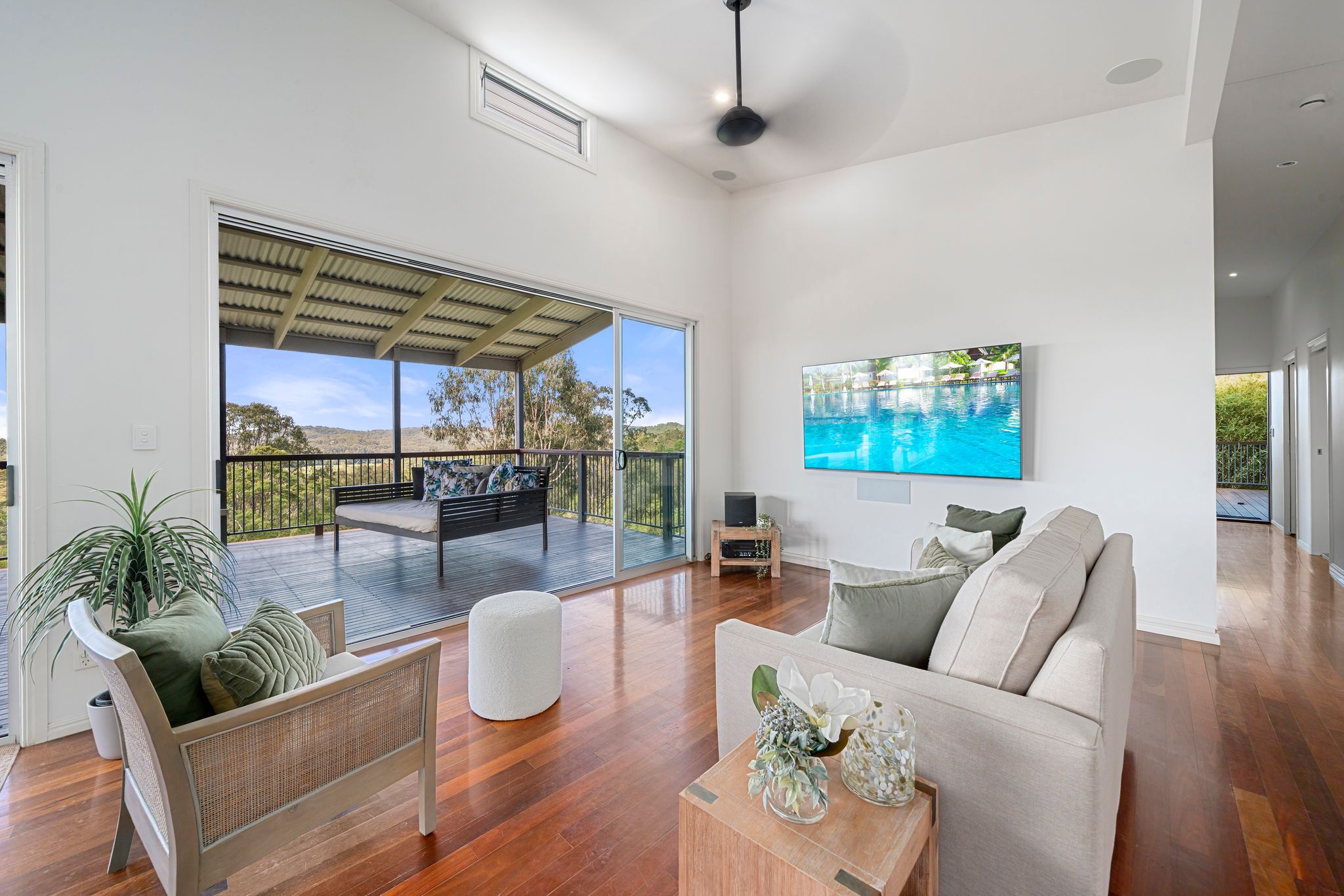 Commanding an elevated position in a peaceful enclave, this exquisite five-bedroom residence epitomises refined hinterland living, combining relaxed coastal elegance with contemporary comfort. Set on just over one acre of fully fenced, manicured grounds, it captures expansive northerly views from every room and welcomes cool coastal breezes throughout the day.