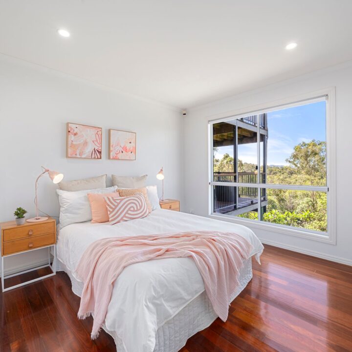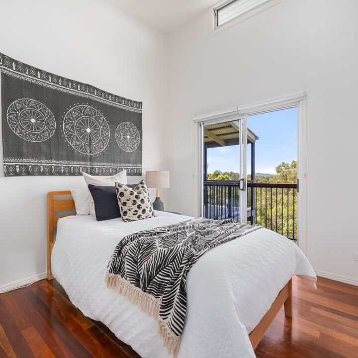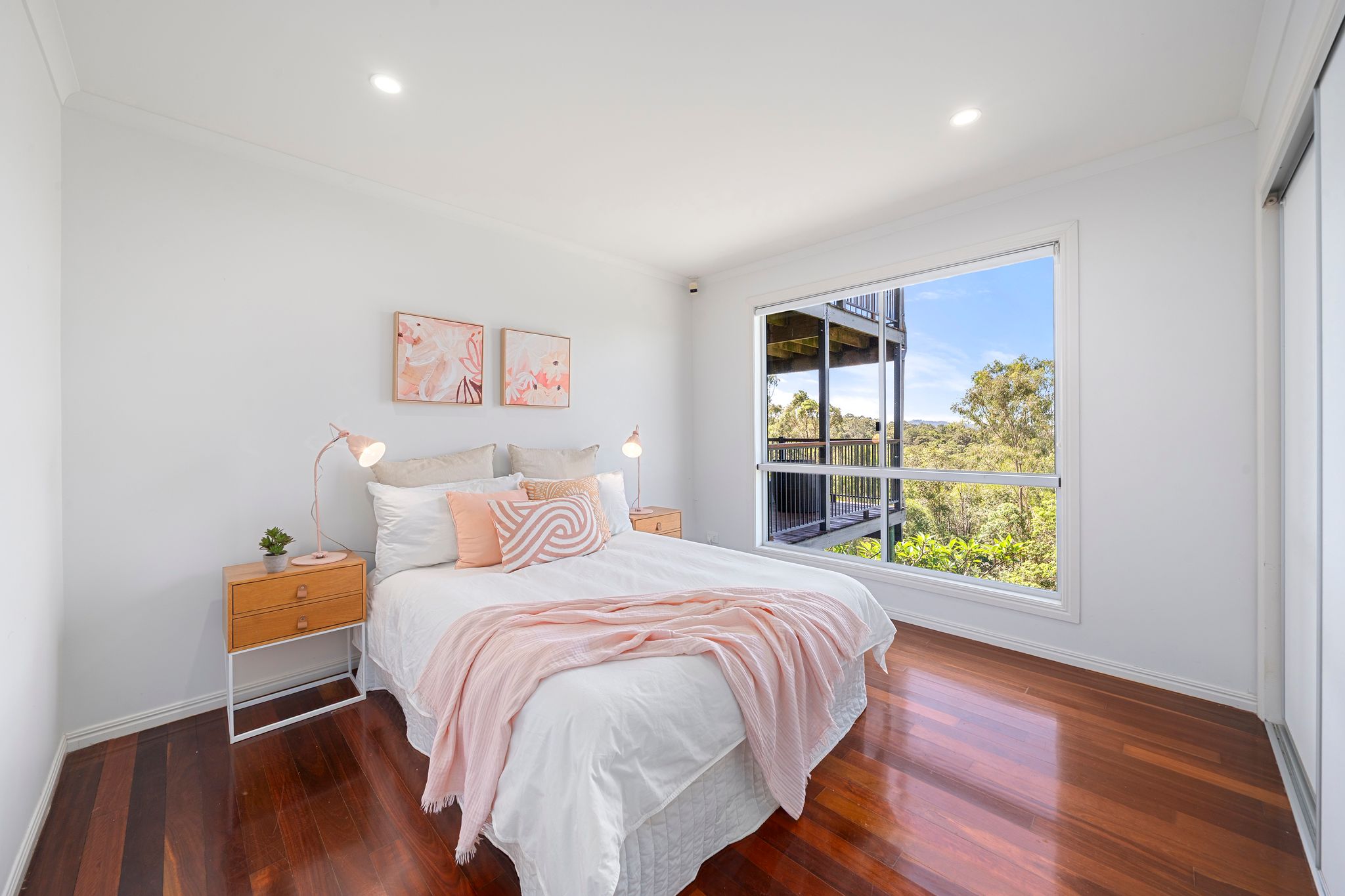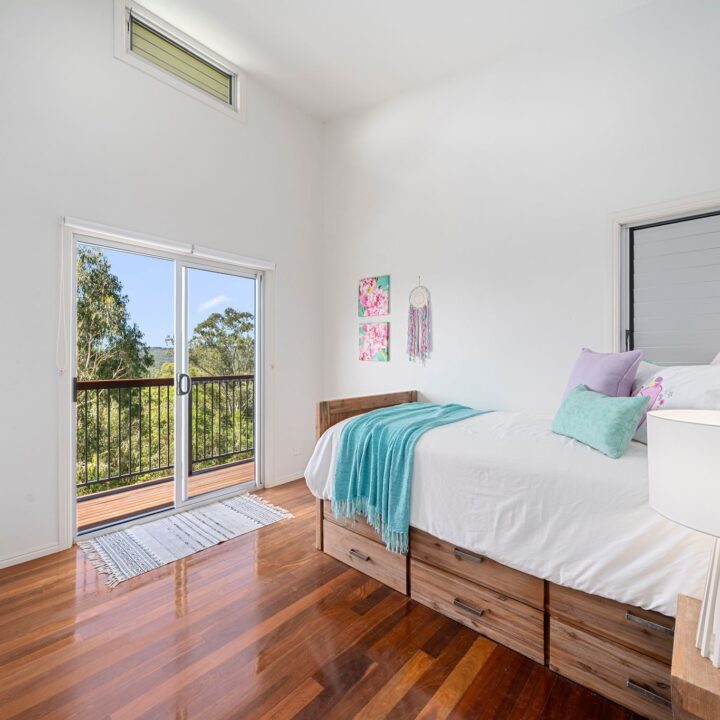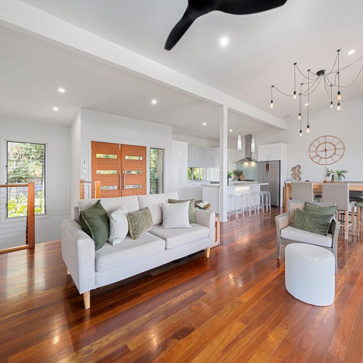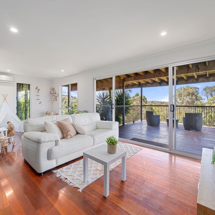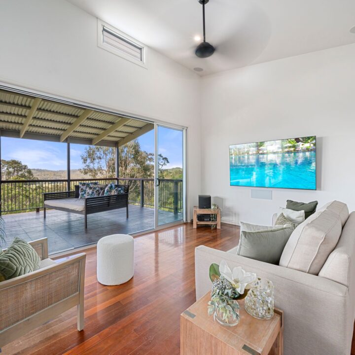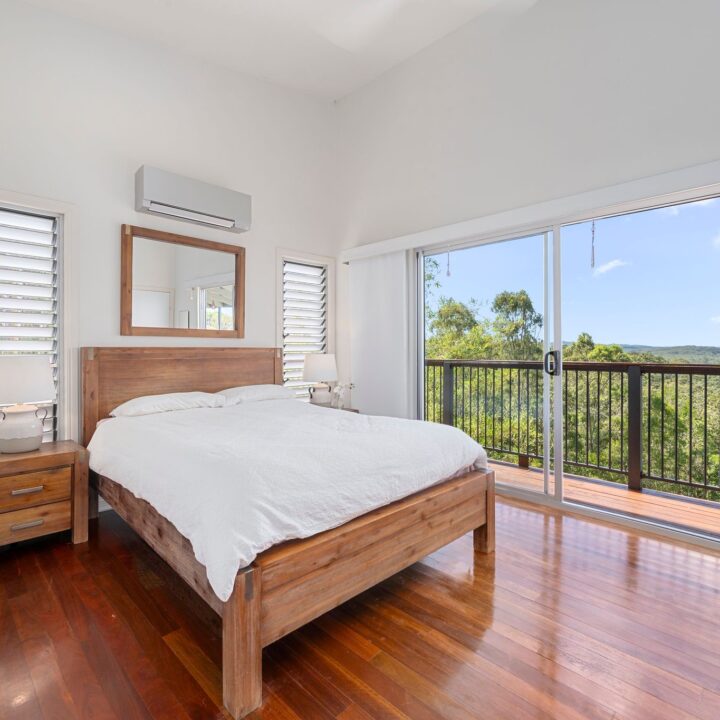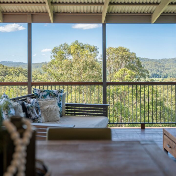 Commanding an elevated position in a peaceful enclave, this exquisite five-bedroom residence epitomises refined hinterland living, combining relaxed coastal elegance with contemporary comfort. Set on just over one acre of fully fenced, manicured grounds, it captures expansive northerly views from every room and welcomes cool coastal breezes throughout the day.