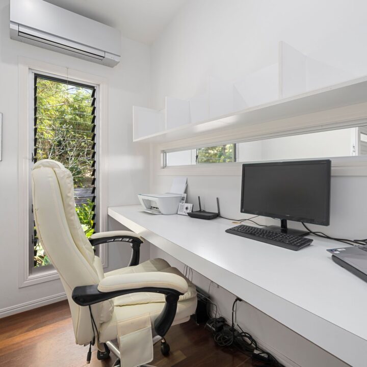 The primary suite offers a private retreat with a walk-in robe and luxurious ensuite, while four additional bedrooms, a dedicated office, and multiple living areas over two levels provide superb versatility for family life.