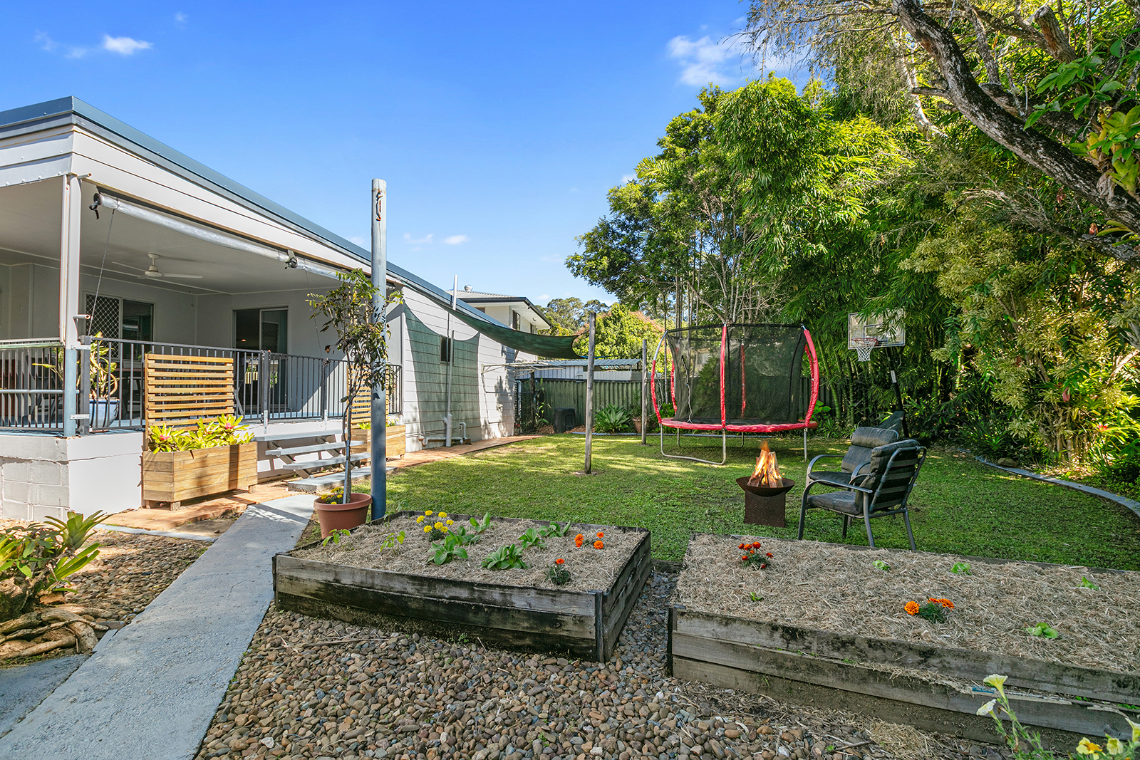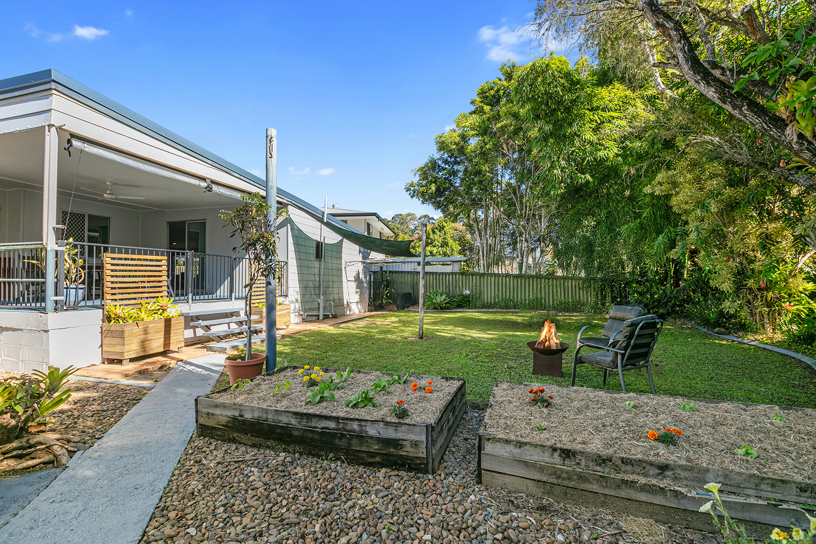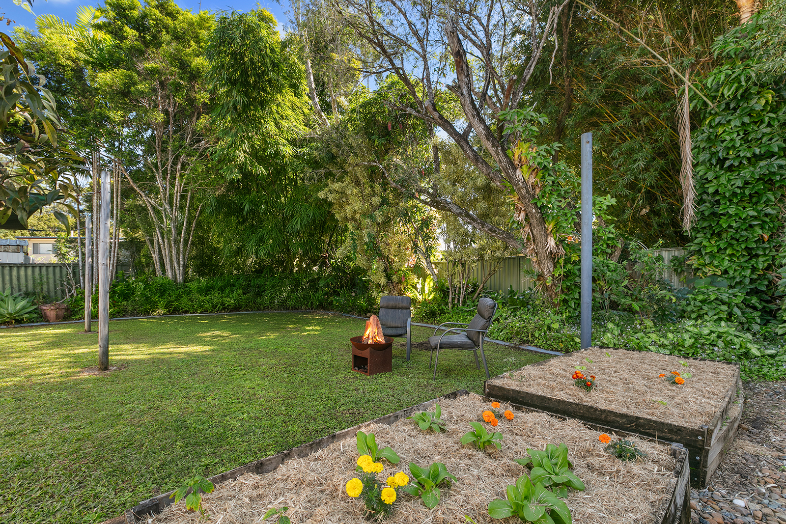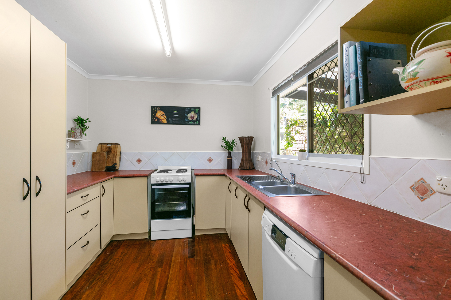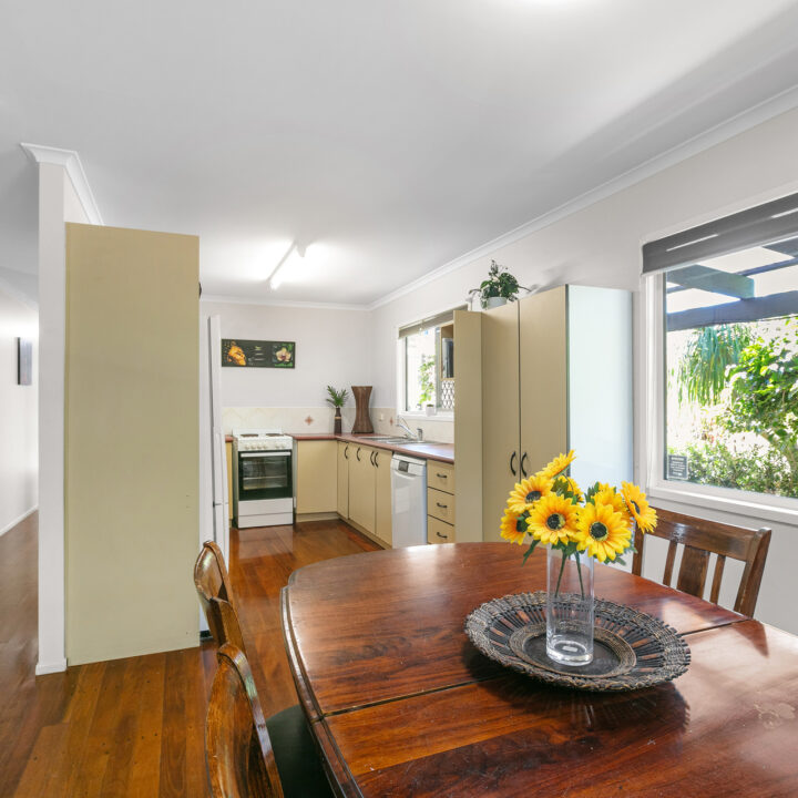 Inside, the home offers a warm and inviting vibe with open plan living and dining, featuring beautiful hardwood timber floors and a cosy fireplace to gather around in the cooler months. The galley-style kitchen enjoys morning sun and a lush garden outlook, complete with passionfruit vines and abundant birdlife.