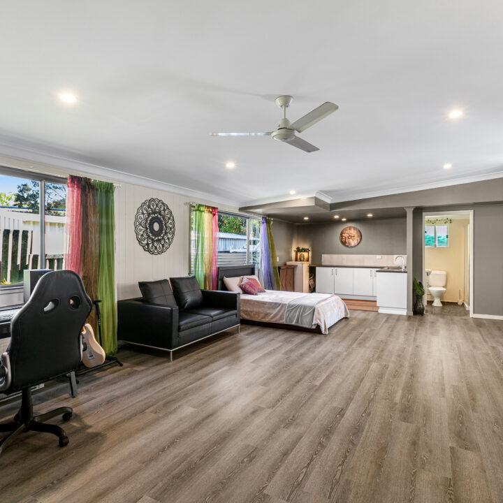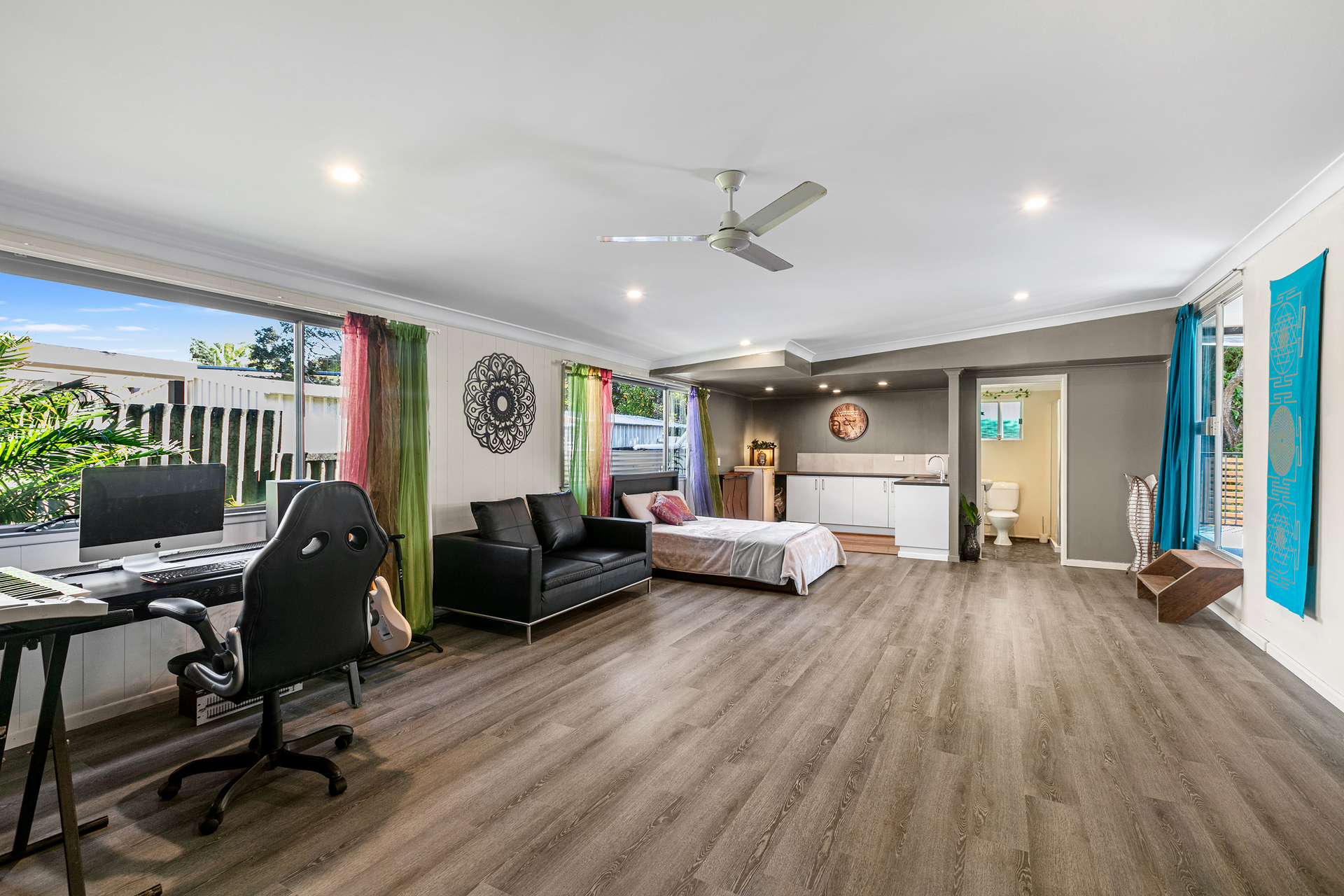 But perhaps the most versatile feature is the separate studio space off the main house-complete with its own entrance, kitchenette, bathroom, air-conditioning and access to the large undercover deck. Whether you’re hosting guests, running a home-based business, or creating a dream teenage retreat, this space offers flexibility that’s hard to find.