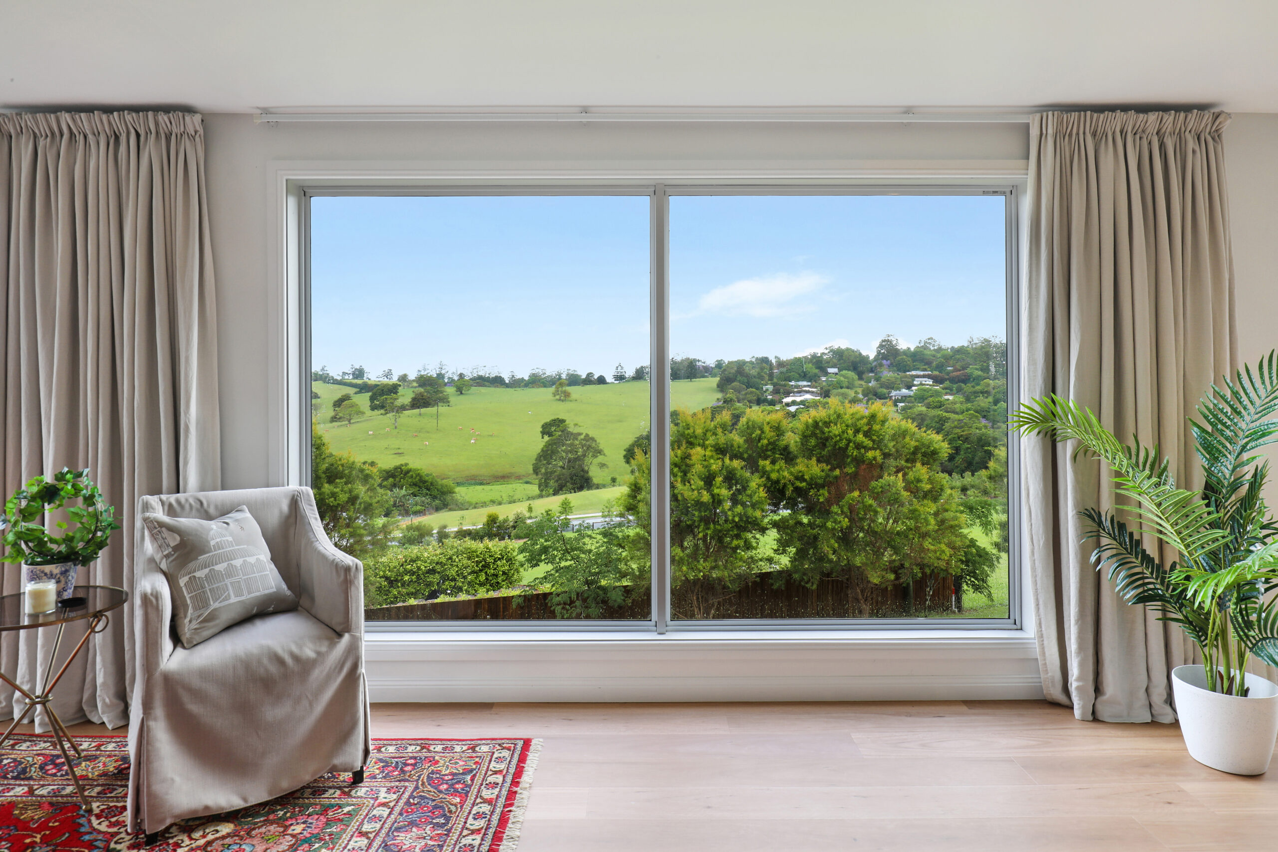 Enjoying an impressive position at the top of a charming cul-de-sac, this exquisite five-bedroom residence blends timeless Hamptons style with contemporary comfort, all framed by breathtaking pastoral views. Immaculately presented, and created for effortless entertaining, the home has an air of relaxed sophistication, with high ceilings, timber floors and thoughtful design details throughout. Walls of glass capture the ever-changing landscape beyond, from misty Maleny mornings to glorious hinterland sunsets.