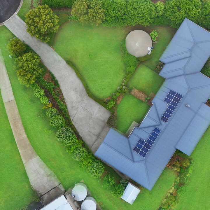 • 64,000L rainwater tank, 5kW solar system