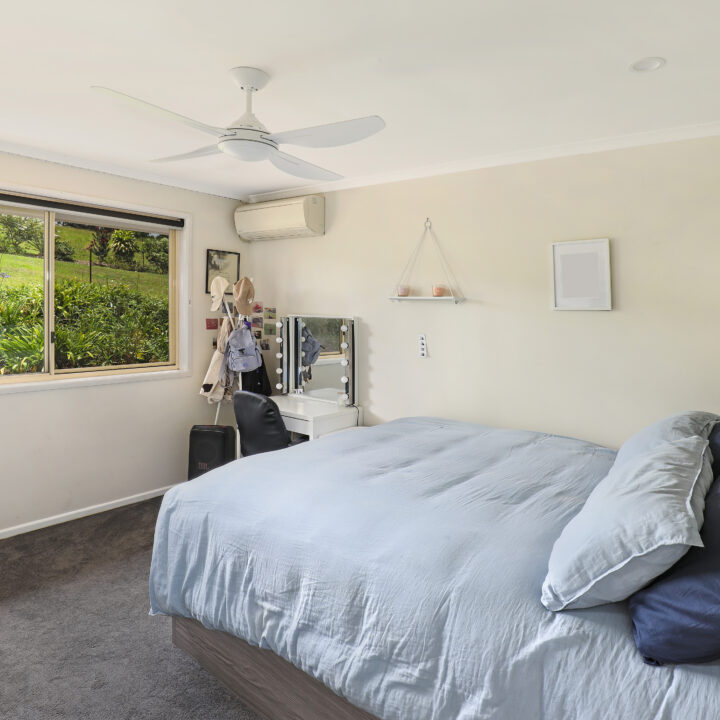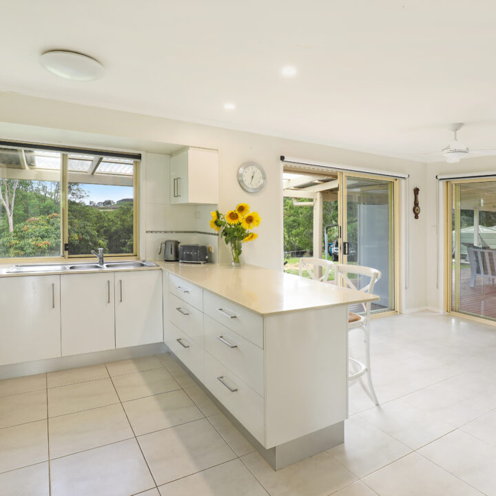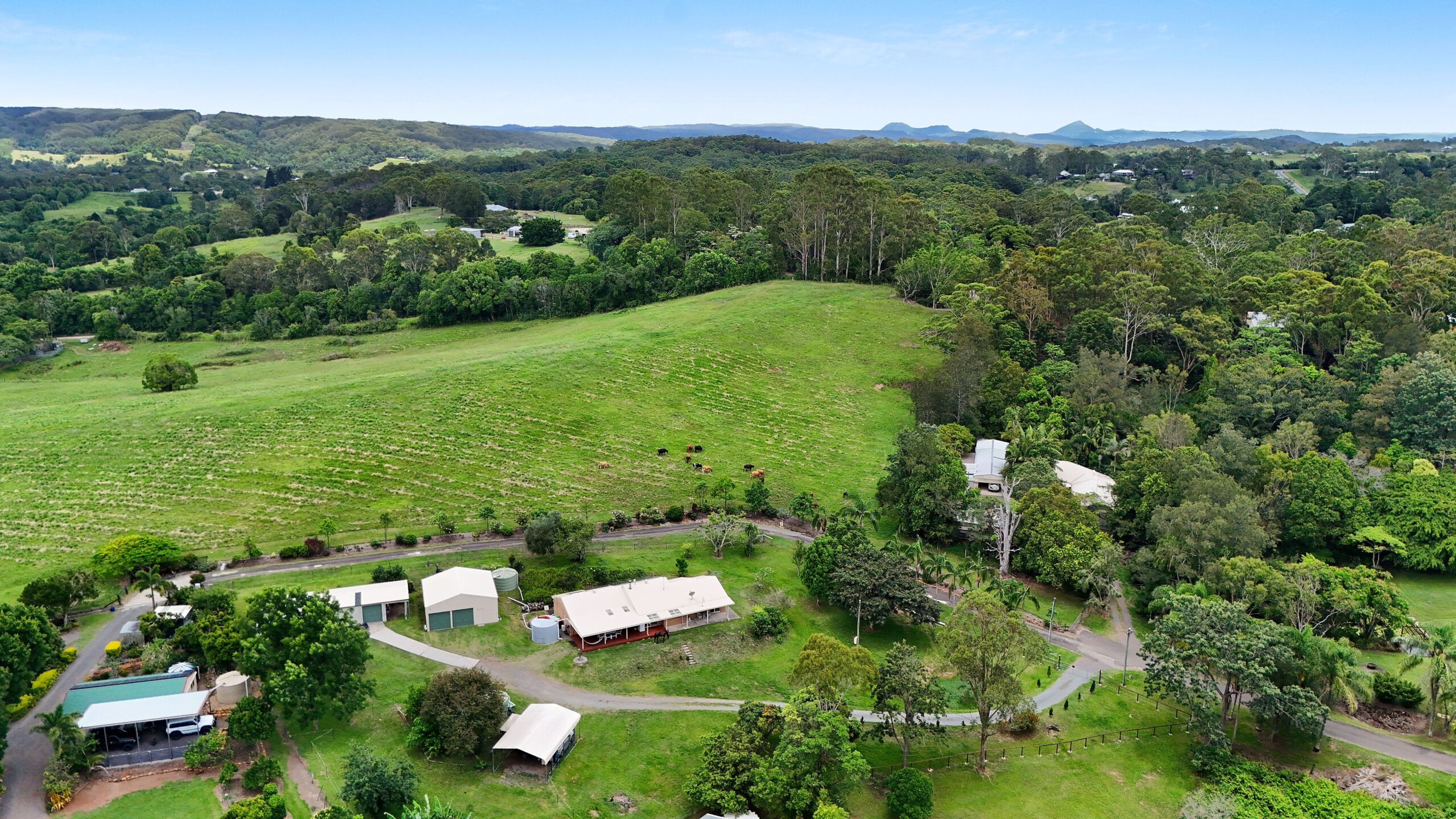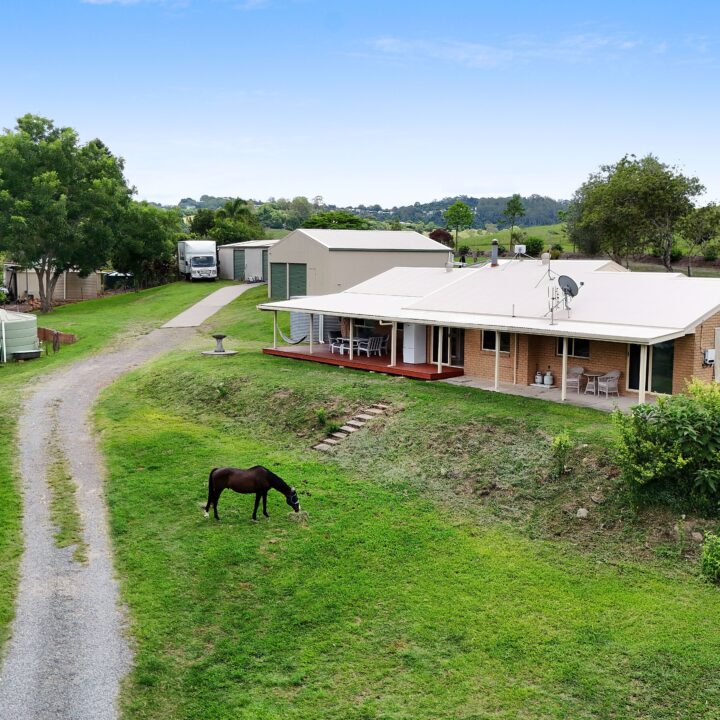 Set quietly back from the road and elevated to capture cooling ocean breezes and lovely district views, this comfortable low-set brick home presents a wonderful opportunity to embrace a relaxed hinterland lifestyle. Positioned on nearly 1.25 acres of usable land, with rolling lawns, established fruit trees, generous sheds and an excellent water supply, the possibilities here are abundant.
