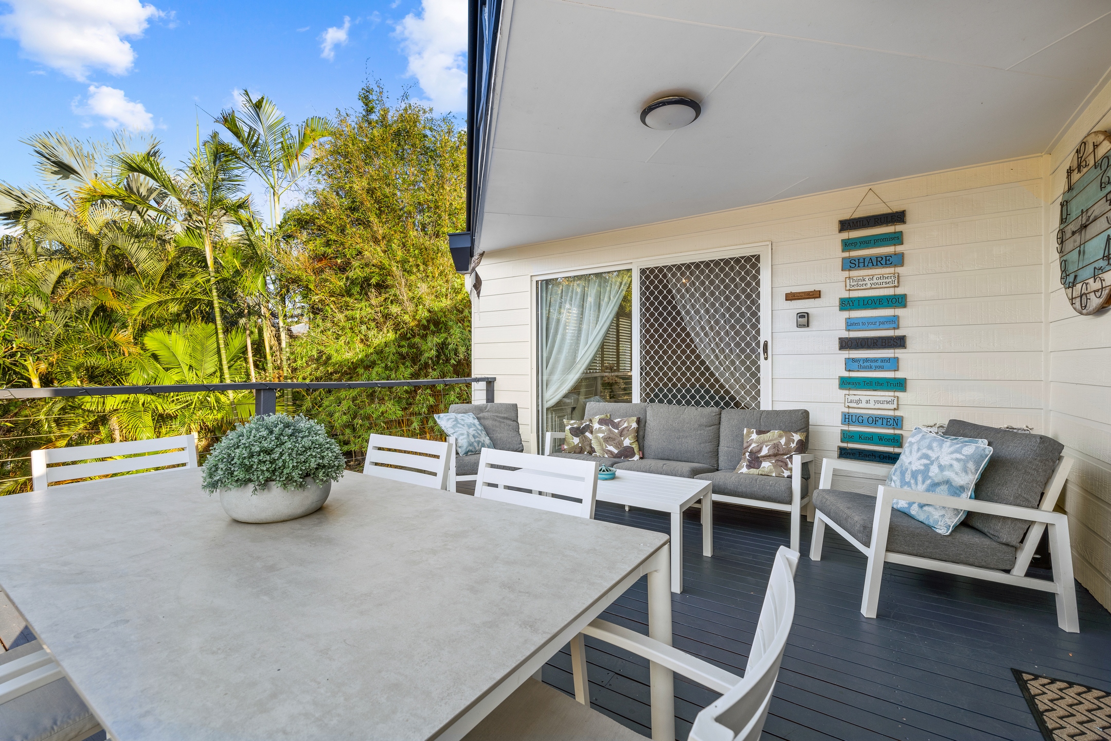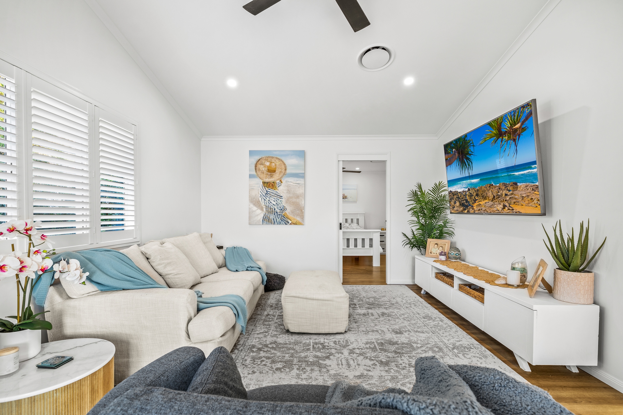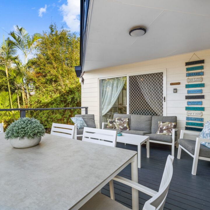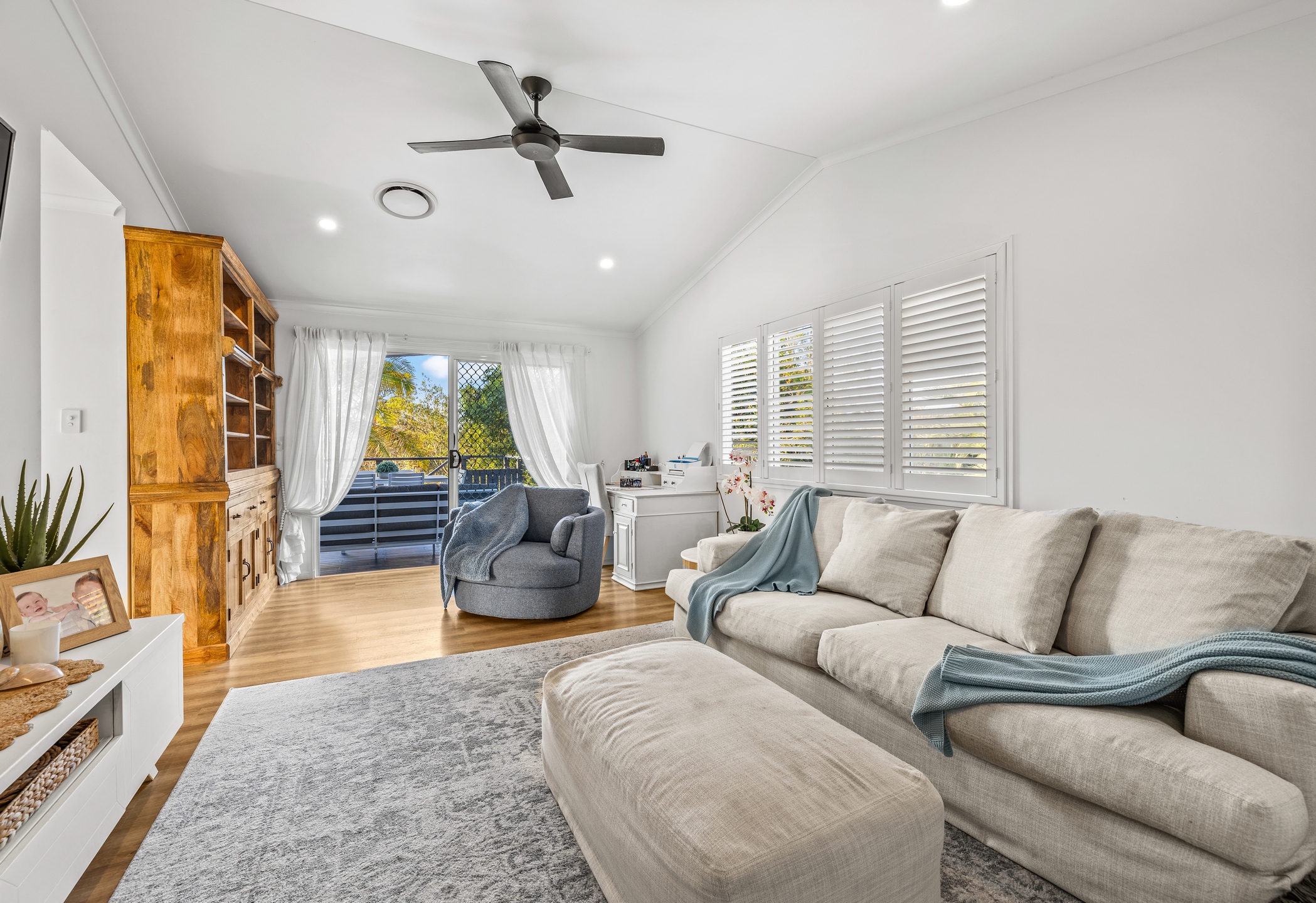 Designed with family living in mind, the home features four generous bedrooms, with the master suite privately positioned at the rear complete with its own ensuite and walk-in robe. A separate living space provides room to relax or entertain, while the private front deck is ideal for morning coffees or sunset drinks overlooking the lush surrounds.