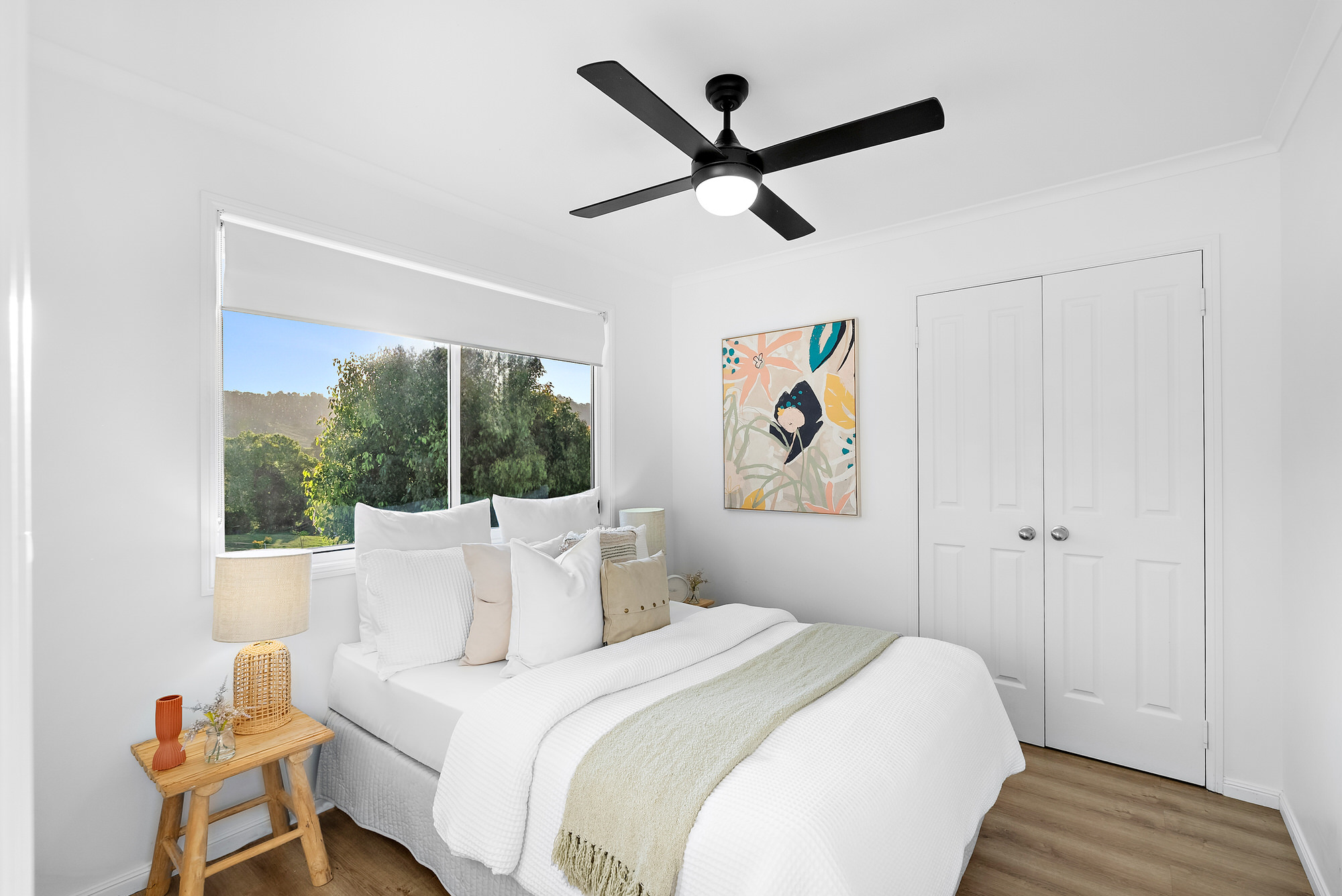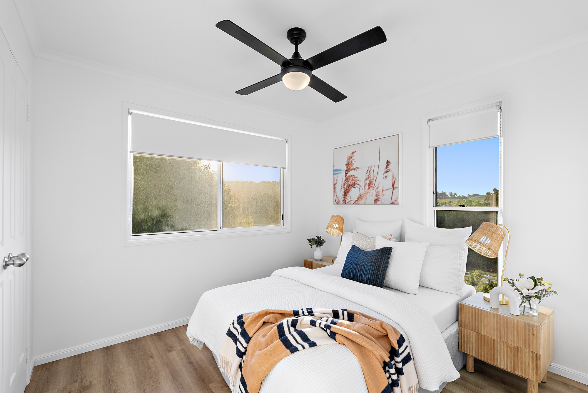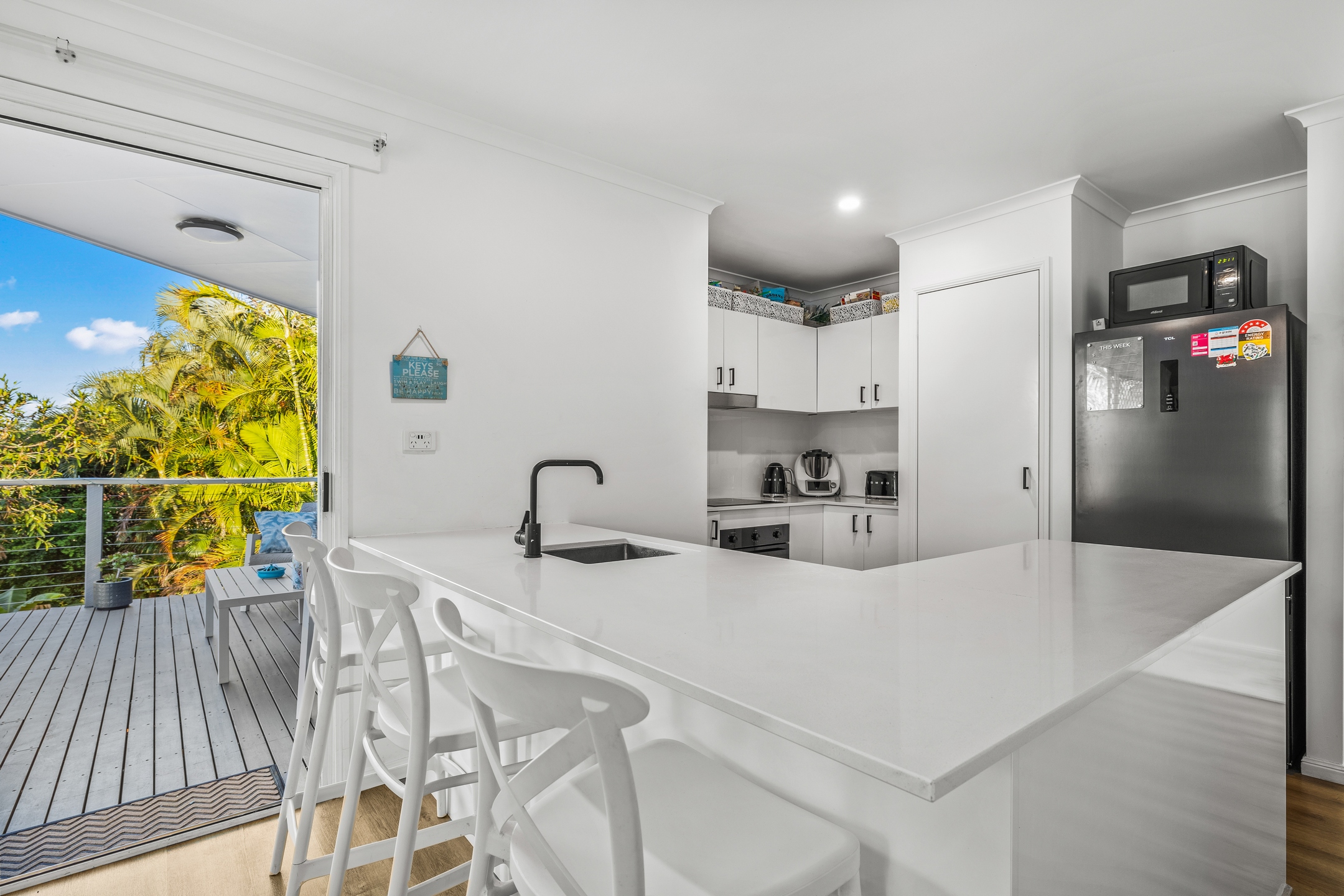 Designed with family living in mind, the home features four generous bedrooms, with the master suite privately positioned at the rear complete with its own ensuite and walk-in robe. A separate living space provides room to relax or entertain, while the private front deck is ideal for morning coffees or sunset drinks overlooking the lush surrounds.