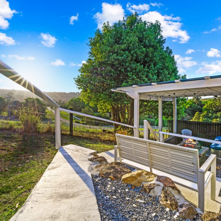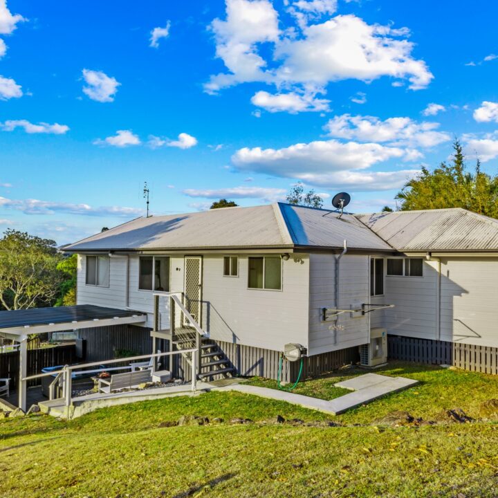 Welcome to “Falcon’s Rest” – a private sanctuary where rural charm meets modern living. Nestled at the end of a quiet street, where suburbia meets acreage, you are surrounded by picturesque farmland with horses as your neighbours. The peaceful, country backdrop makes this home feel like a true escape, yet you are just five minutes from the heart of Nambour. You’ll feel a world away from the bustle yet close to schools, shops, and conveniences.