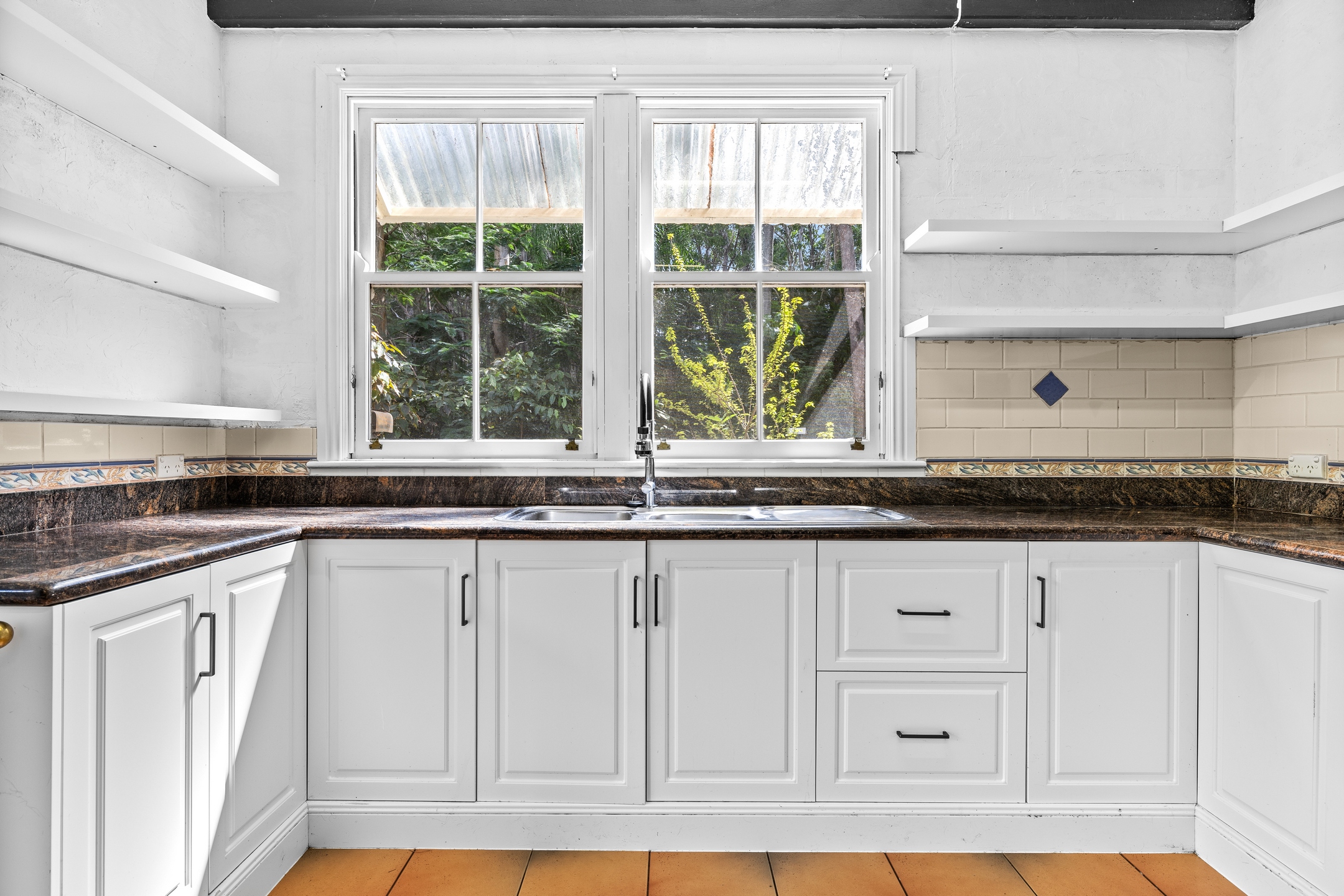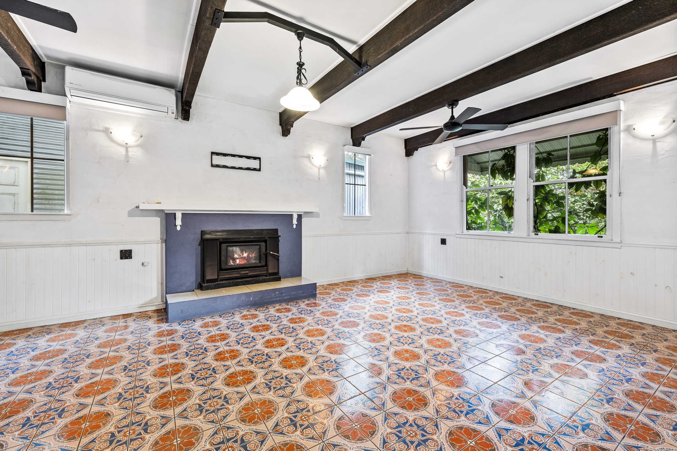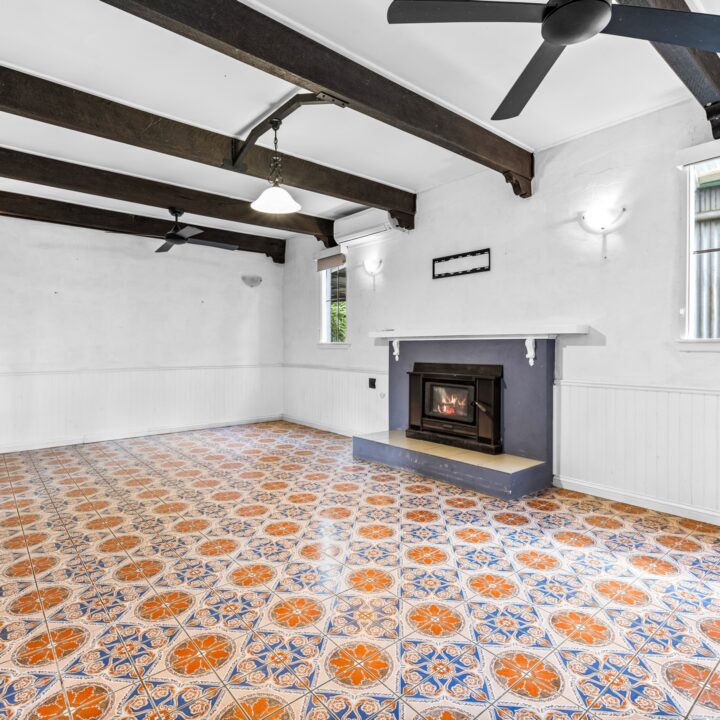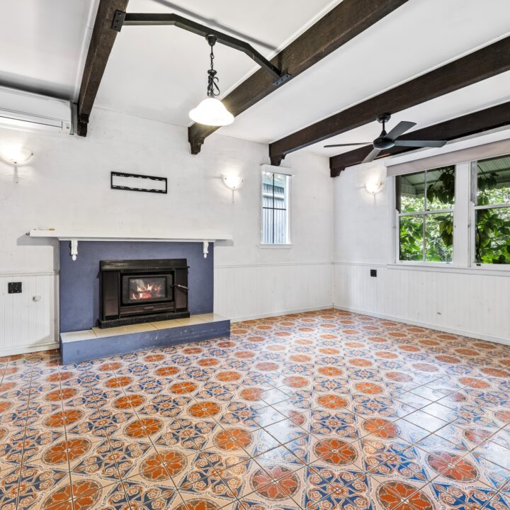 Inside, warmth and character define every space. Timber accents, high ceilings and rich detailing create a sense of comfort and timeless charm, while multiple living zones offer flexibility for families, guests or shared living. A generous lounge with fireplace provides a warm and inviting space to unwind, while the central kitchen anchors daily life – complete with granite benchtops and a gas stove, equally suited to quiet mornings or evenings spent entertaining.