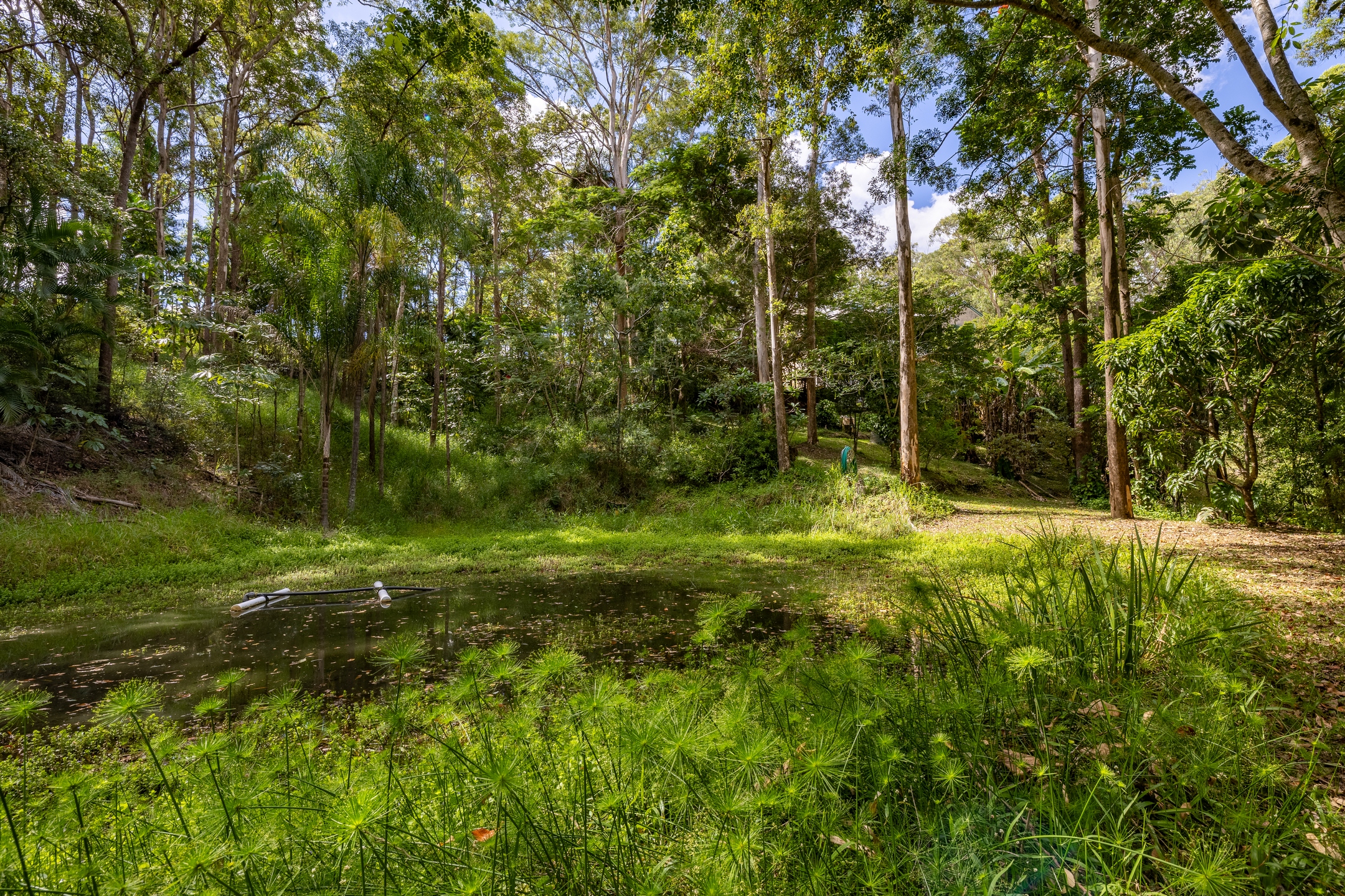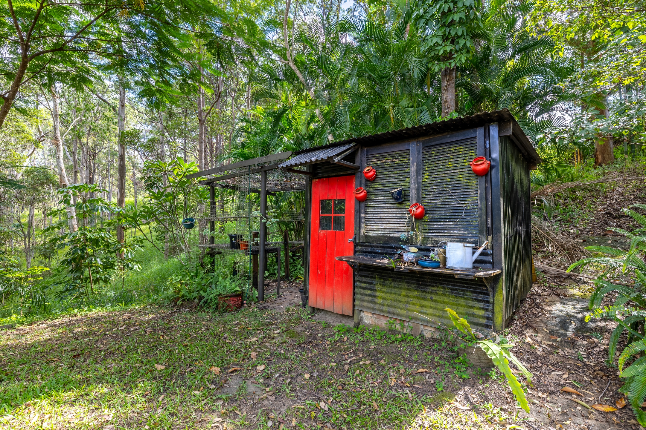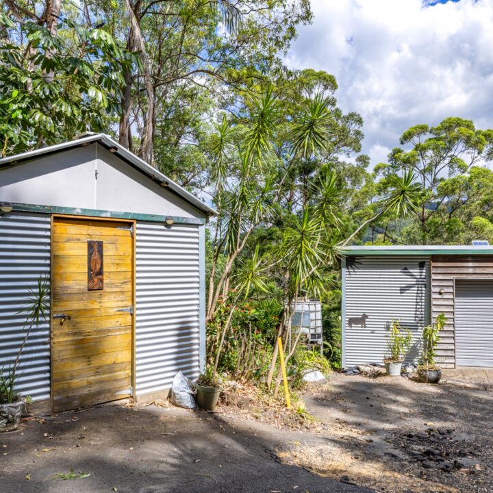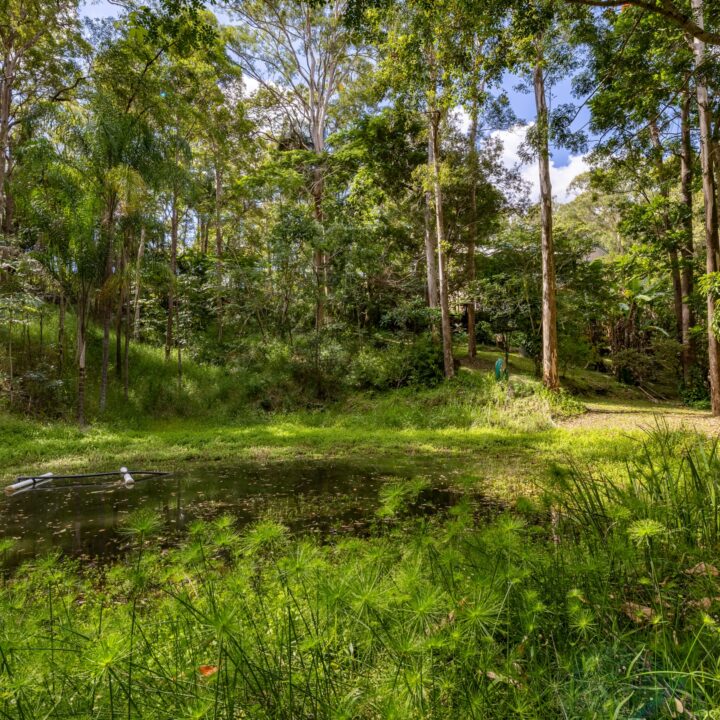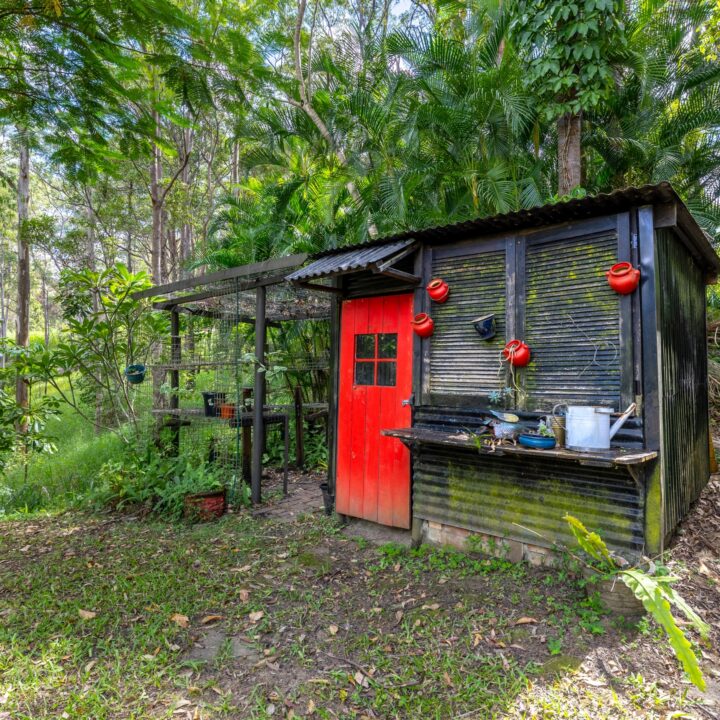 Outdoors, the land unfolds gently and generously, offering room to dream. There is space for children to roam, gardens to flourish, a pool to be imagined, or a more self-sufficient way of living to take shape over time. Established fruit trees – including mandarin, lime, coffee beans and banana plants-sit alongside a peaceful dam, adding to the sense of abundance and natural serenity. A potting shed is already in place, while space remains for a chicken coop, completing the vision of a true hinterland lifestyle.