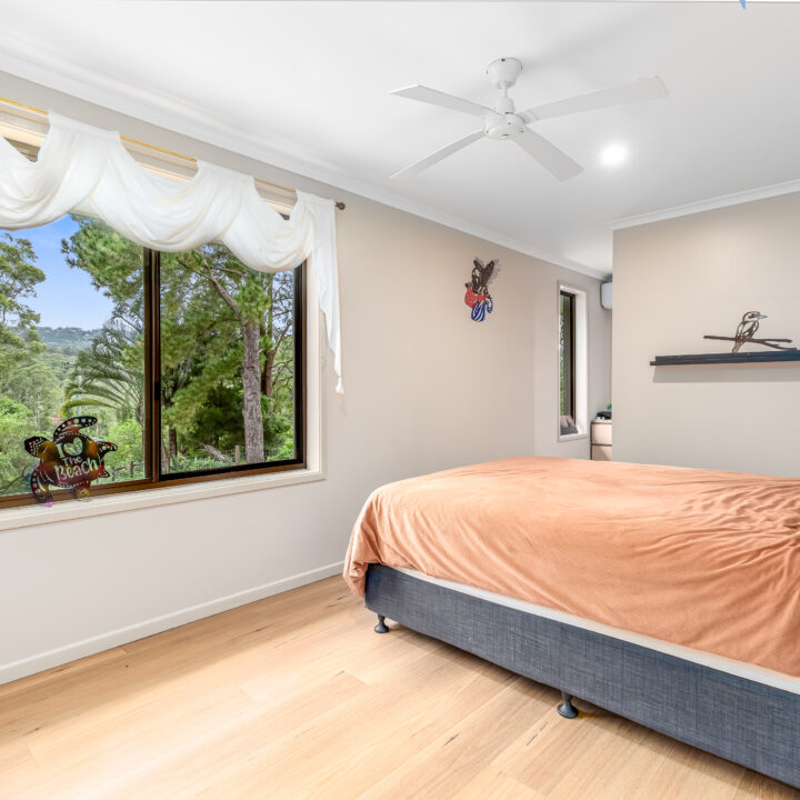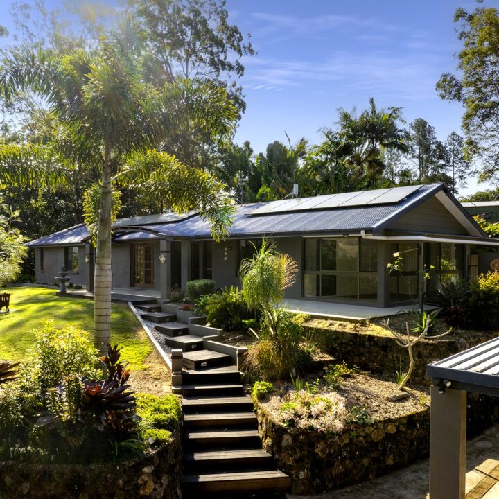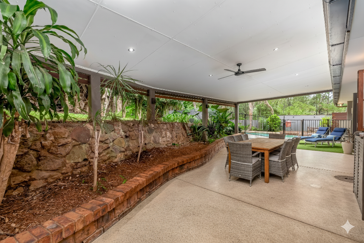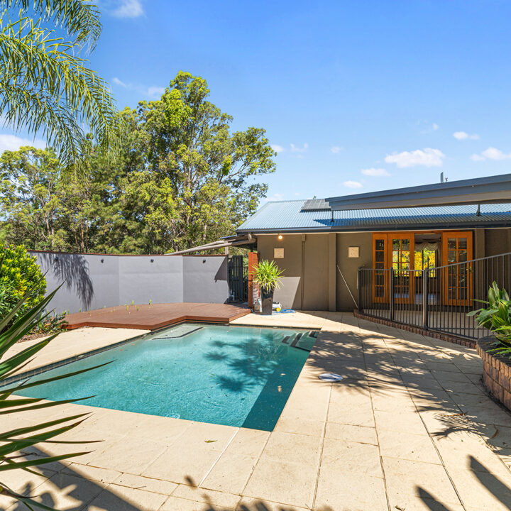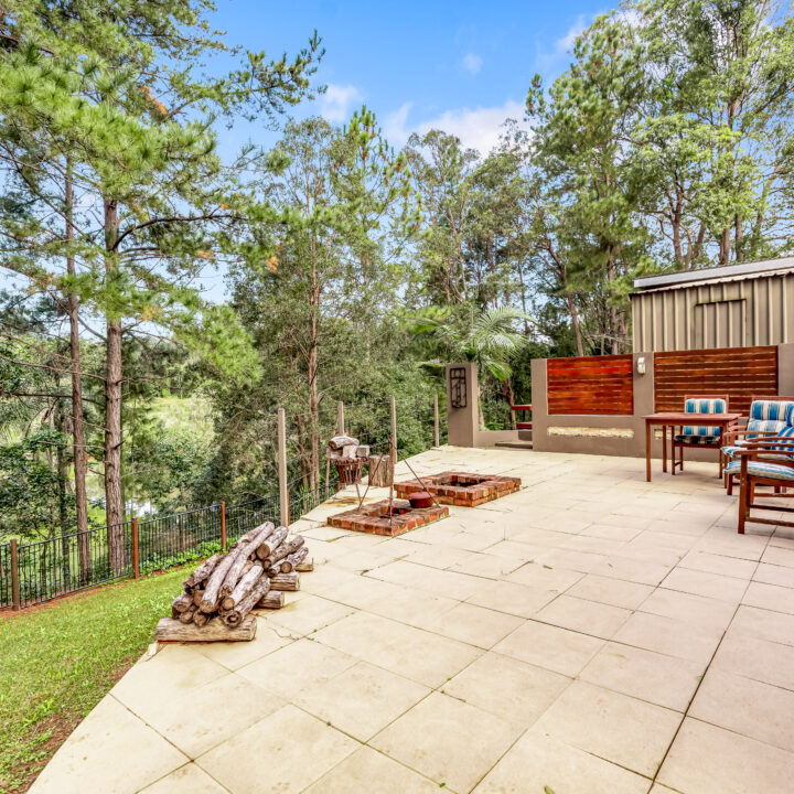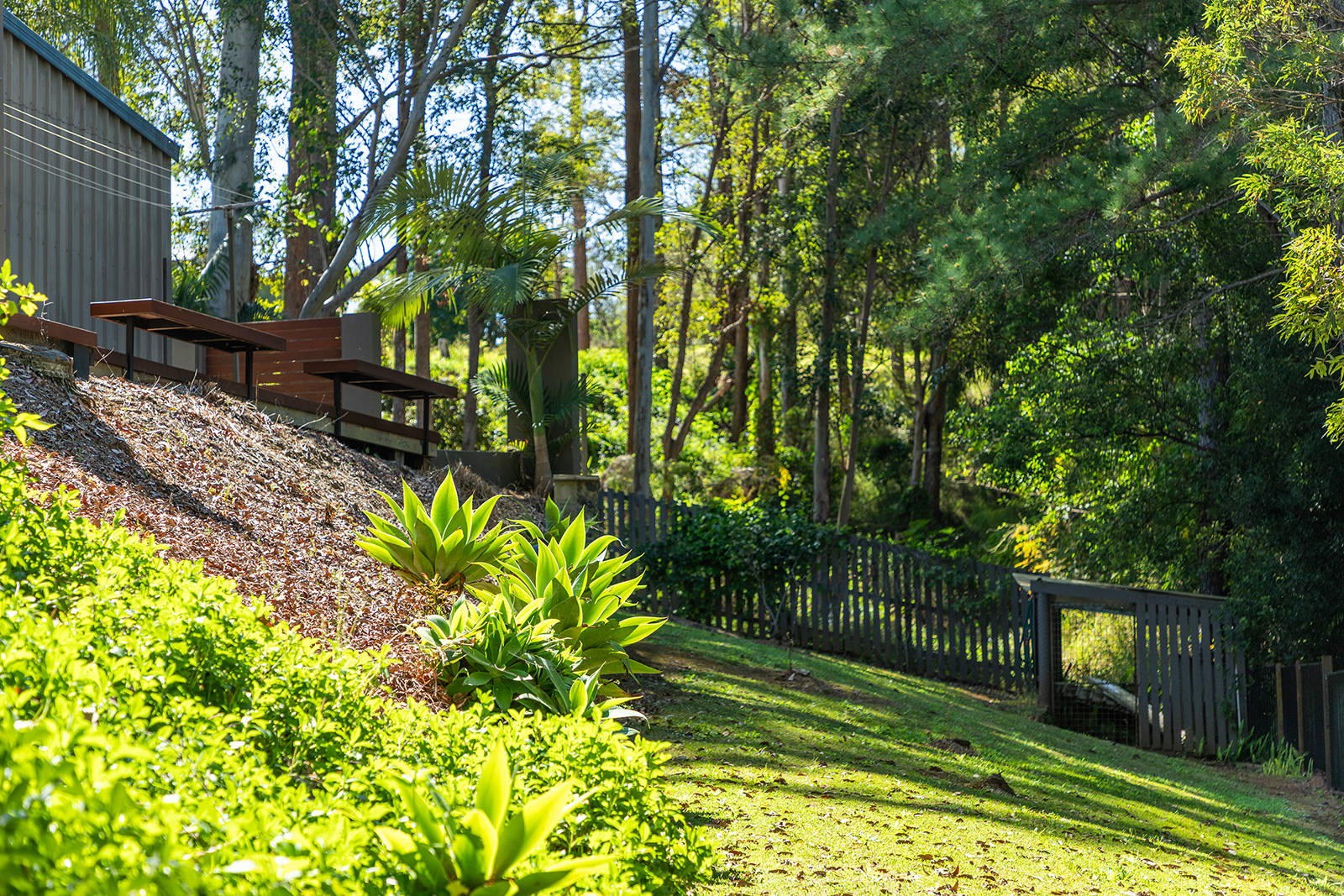 Step outside and the fun begins. Swim in the sparkling pool, host BBQs under the covered patio, or wander down to your secluded bush fire-pit for nights under the stars. The terraced block means plenty of usable space, and there’s room for a secondary dwelling (STCA) if you want to take things to the next level.