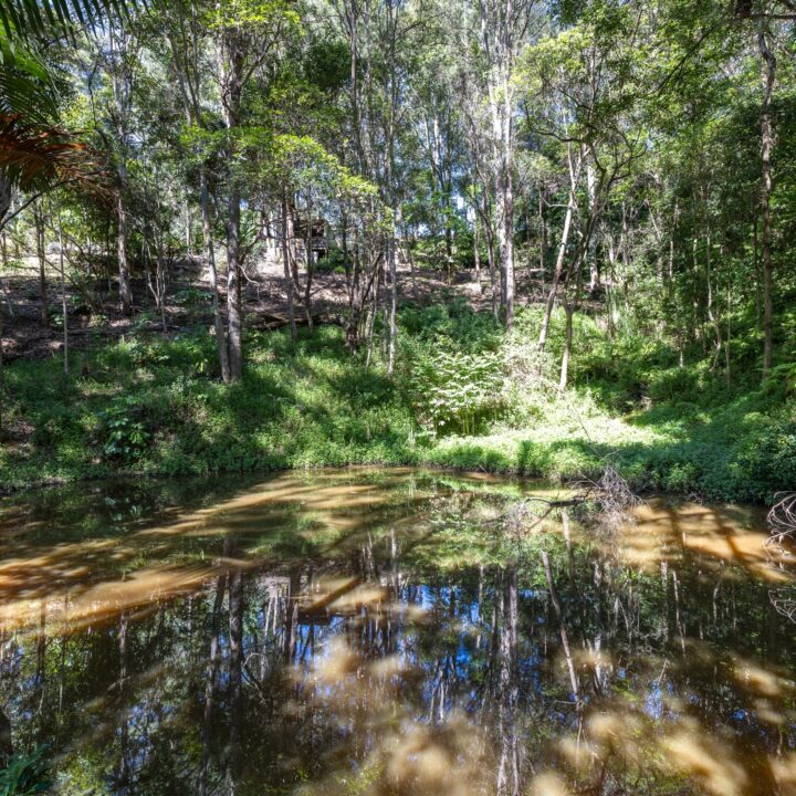 Terraced gardens roll nicely down the block, well maintained and lovely to enjoy. A dam sits quietly at the base of the property, while the surrounding bushland creates a sense of privacy that’s hard to replicate.