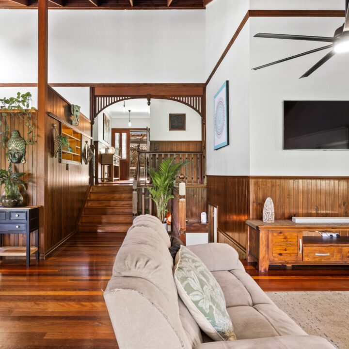 – Hardwood timber floors + soaring raked ceilings – warmth, light and character throughout