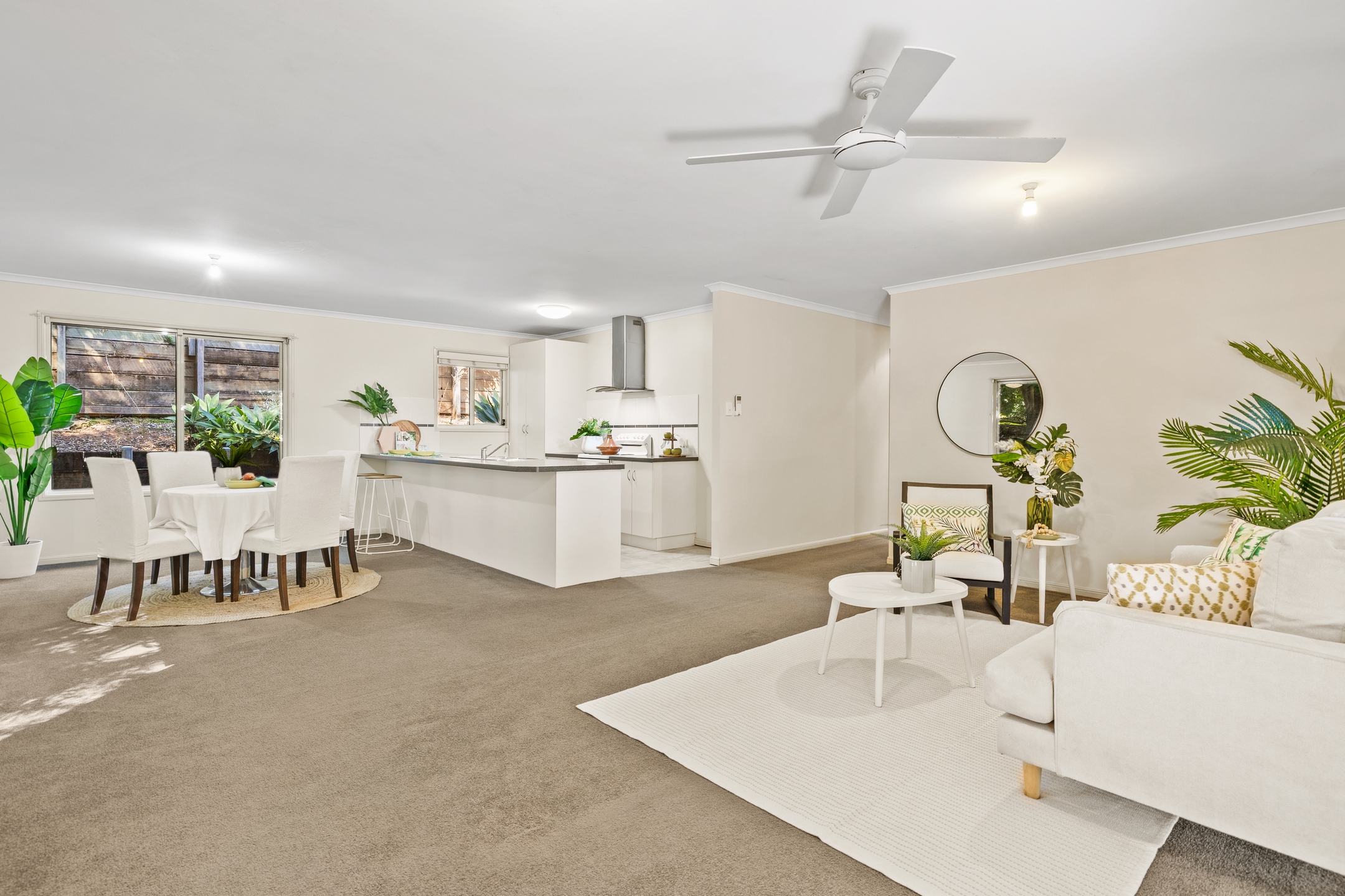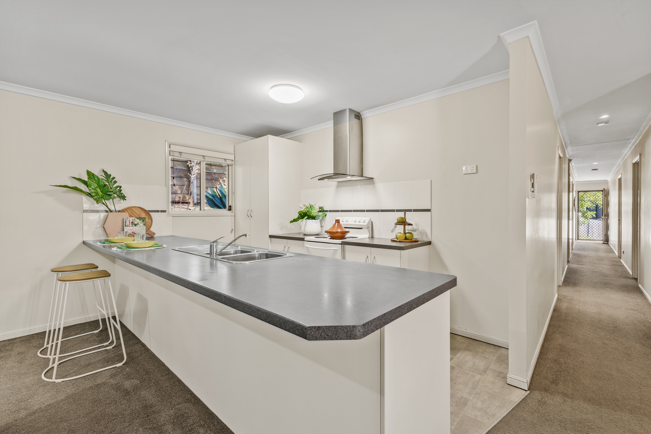 Inside, the home is light-filled and welcoming, with a practical open-plan design centred around a functional kitchen and comfortable living and dining zones. Sliding doors create an easy connection to the outdoors, making it a great setting for entertaining or simply unwinding while taking in the greenery beyond. All four bedrooms are well-sized and complemented by two bathrooms and a double garage, providing a layout that works effortlessly for families, investors, or those chasing an easy-care lifestyle with a little extra room to move.