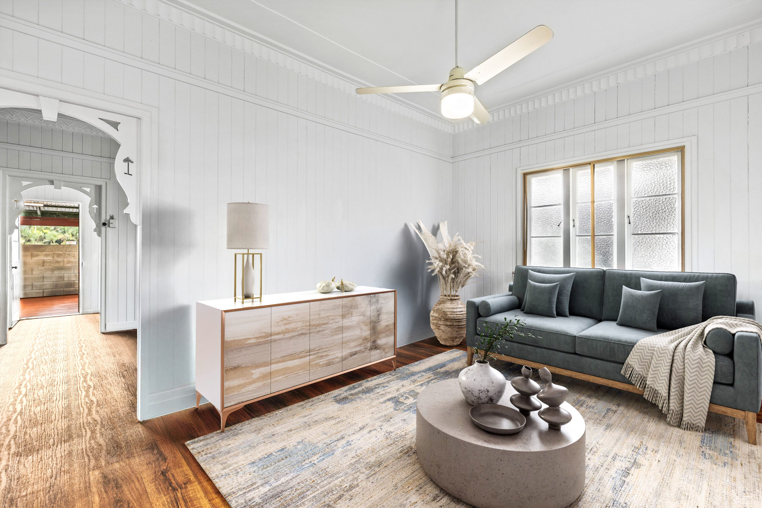 The front residence exudes classic charm, featuring two bedrooms plus a study/office, a renovated bathroom, and beautiful hardwood timber floors throughout. The home also includes two spacious living areas and ceiling fans throughout for year-round comfort. The open-plan layout flows seamlessly onto a private back deck, ideal for entertaining or relaxing while overlooking the leafy surrounds.