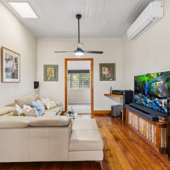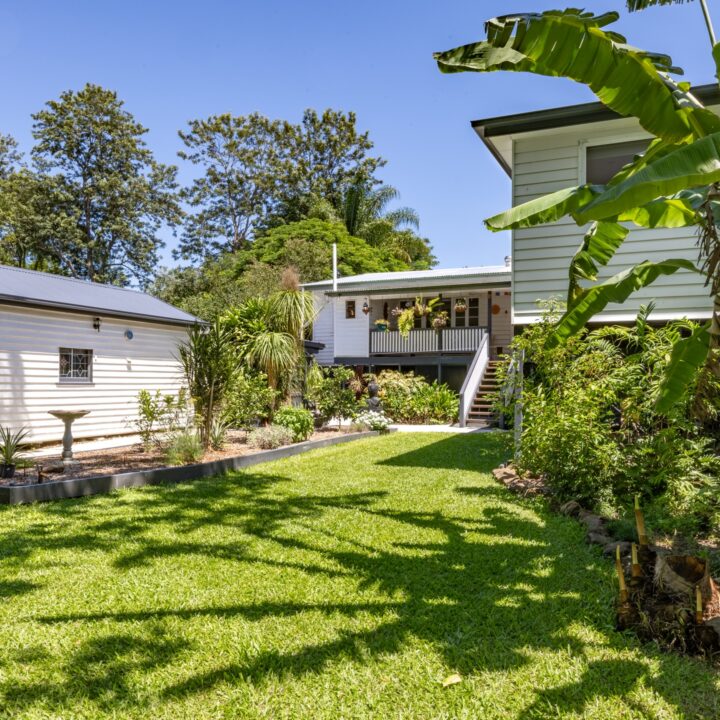 A classic 1918 Queenslander, rich in character and warmth, offering everything people hope for – 3-metre ceilings, polished timber floors, fretwork, textured glass and louvre windows that catch the breezes beautifully – all set on a flat, usable quarter acre right in the heart of Eudlo.