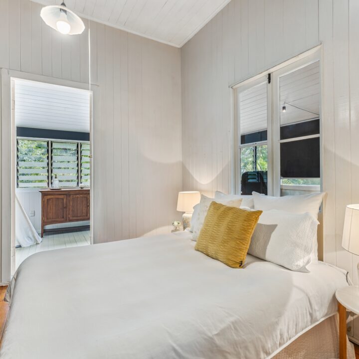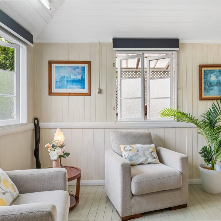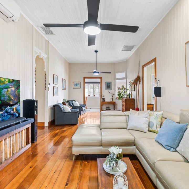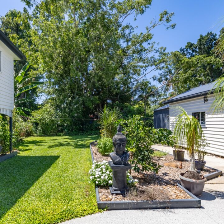 Lovingly restored and meticulously maintained by the same owners for the past 36 years, this is a home where care and pride are felt in every detail. From the back gate, you’re welcomed into a private garden oasis with lime, lemon, banana and passionfruit trees, veggie beds, herbs, abundant birdlife and the added bonus of its own well and strong water supply.